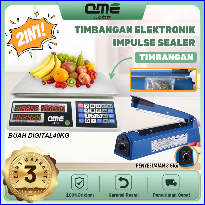 Qme Timbangan Buah Digital 40kg Alat Press Plastik Impulse Sealer 20cm 30cm