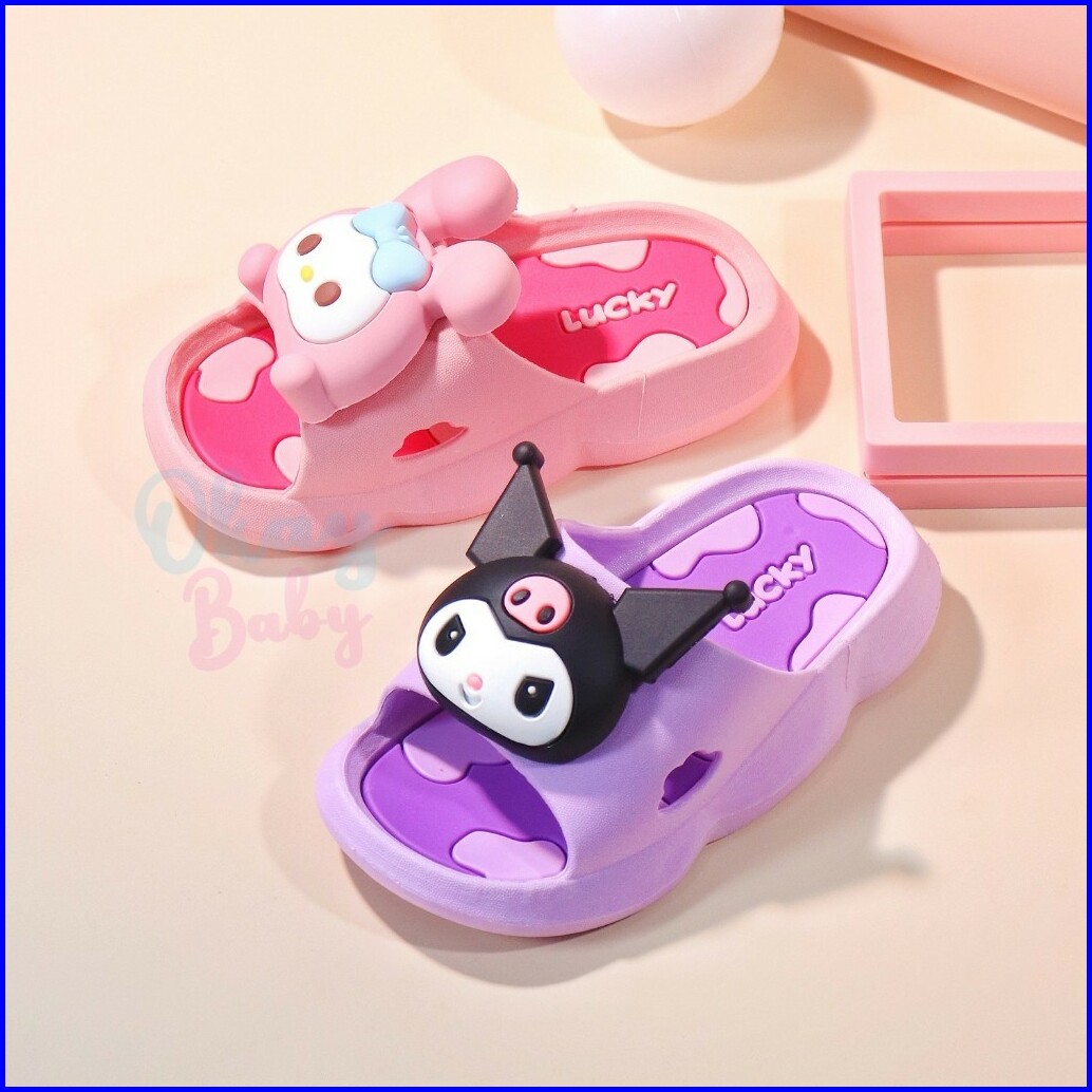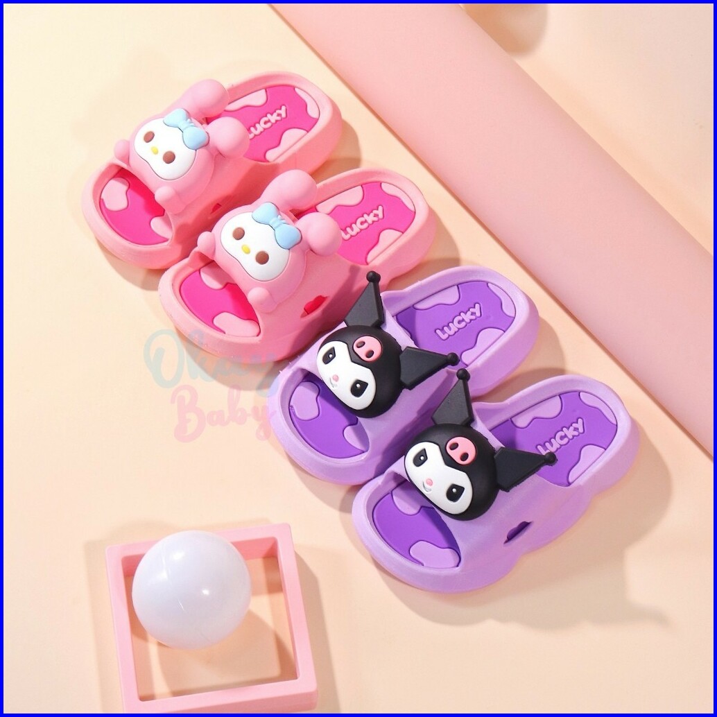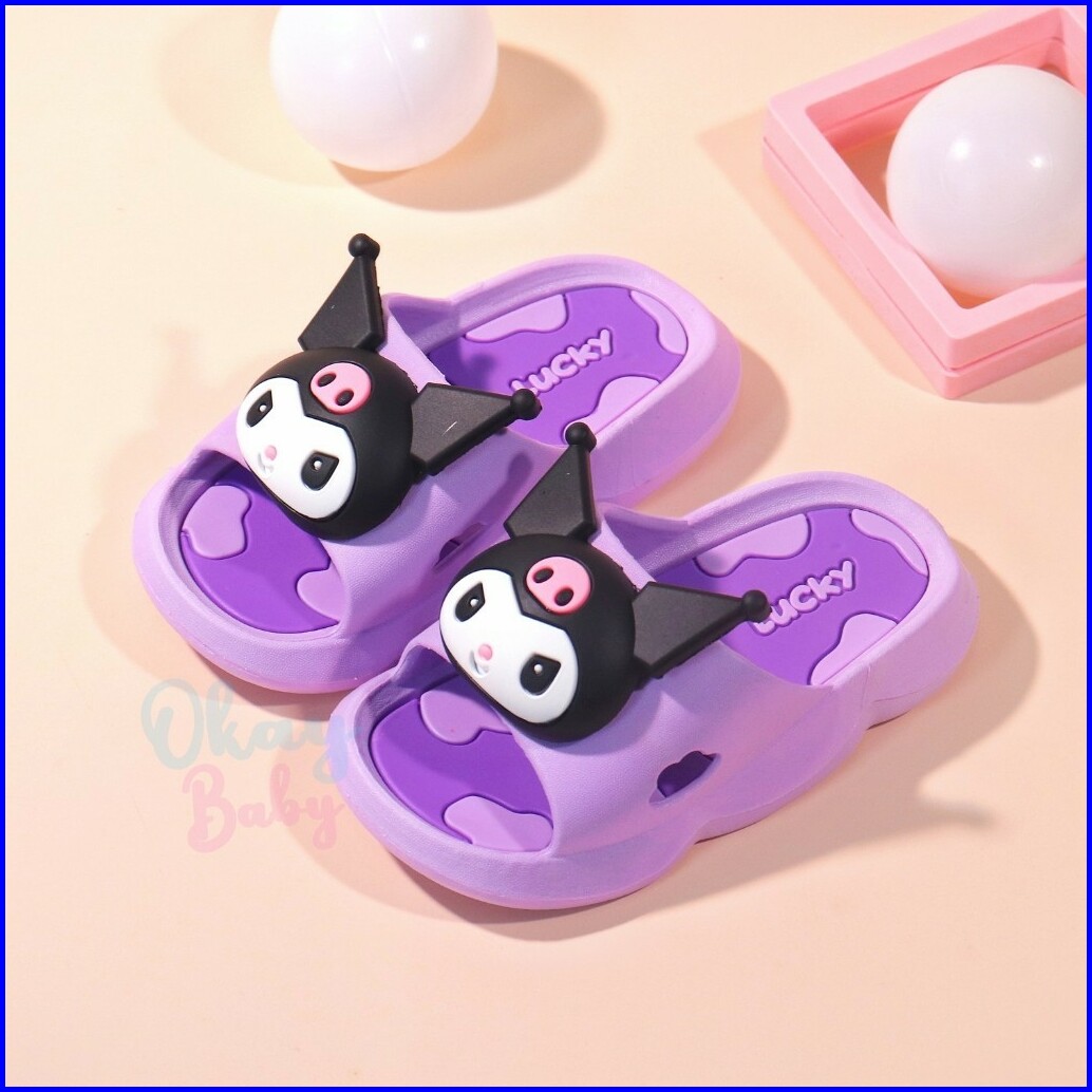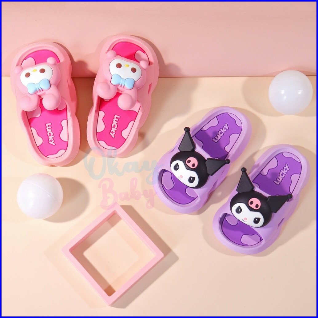 Promo 5.5 Import Okaybaby B386 Sendal Slop Kartun Anak Perempuan Kekinian Sandal Anak Cewek Lucu Bahan Karet Jelly Anti