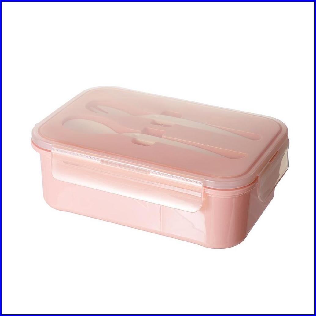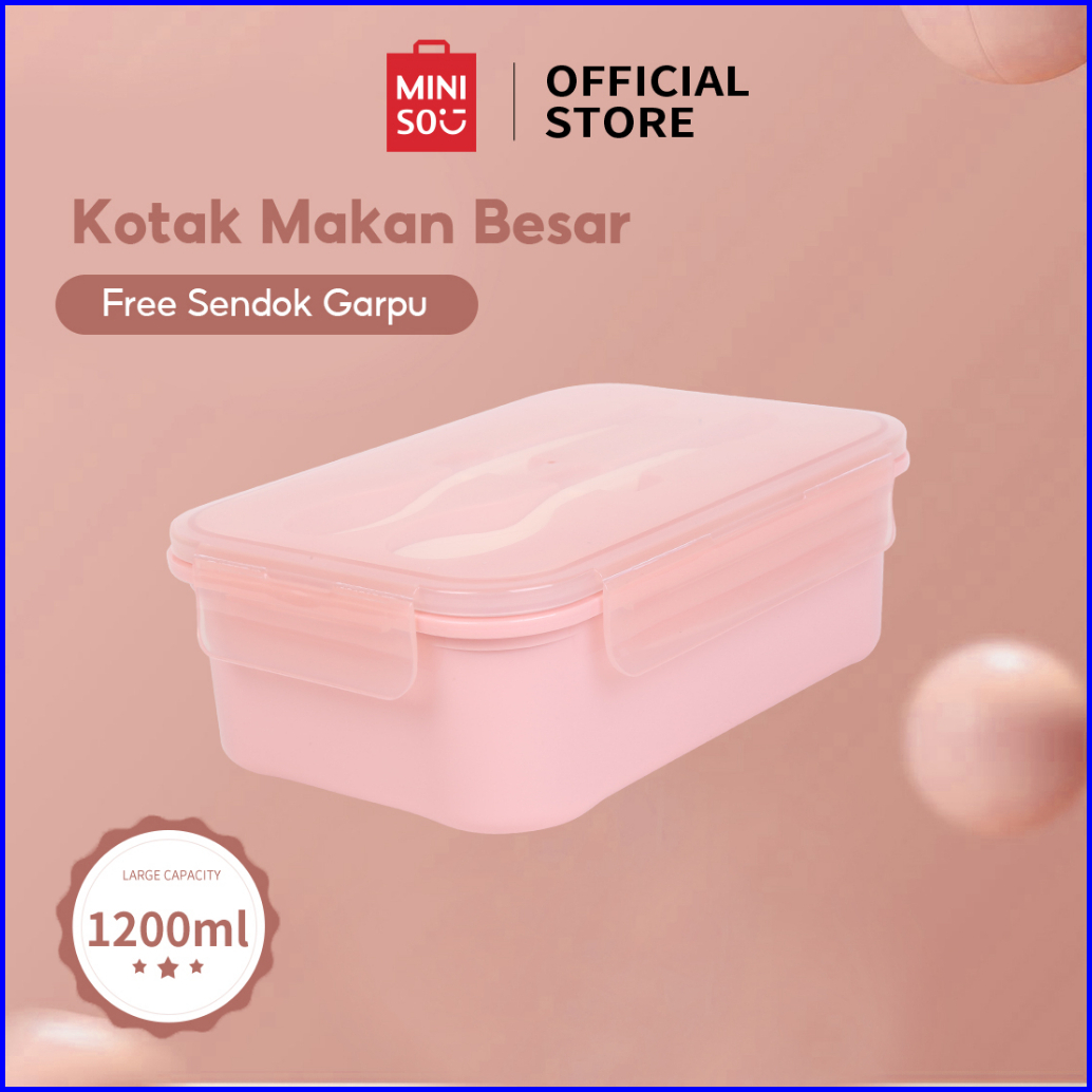 Miniso Lunch Box Set Kotak Makan 1200ml Kotak Bekal Anti Tumpah Free Sendok Dan Garpu