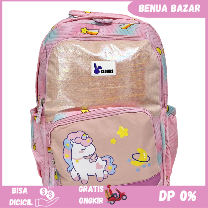 tas sekolah anak perempuan Tas Sekolah Anak Perempuan SD SMP SMA Unicorn Hologram Glitter Tas Ransel