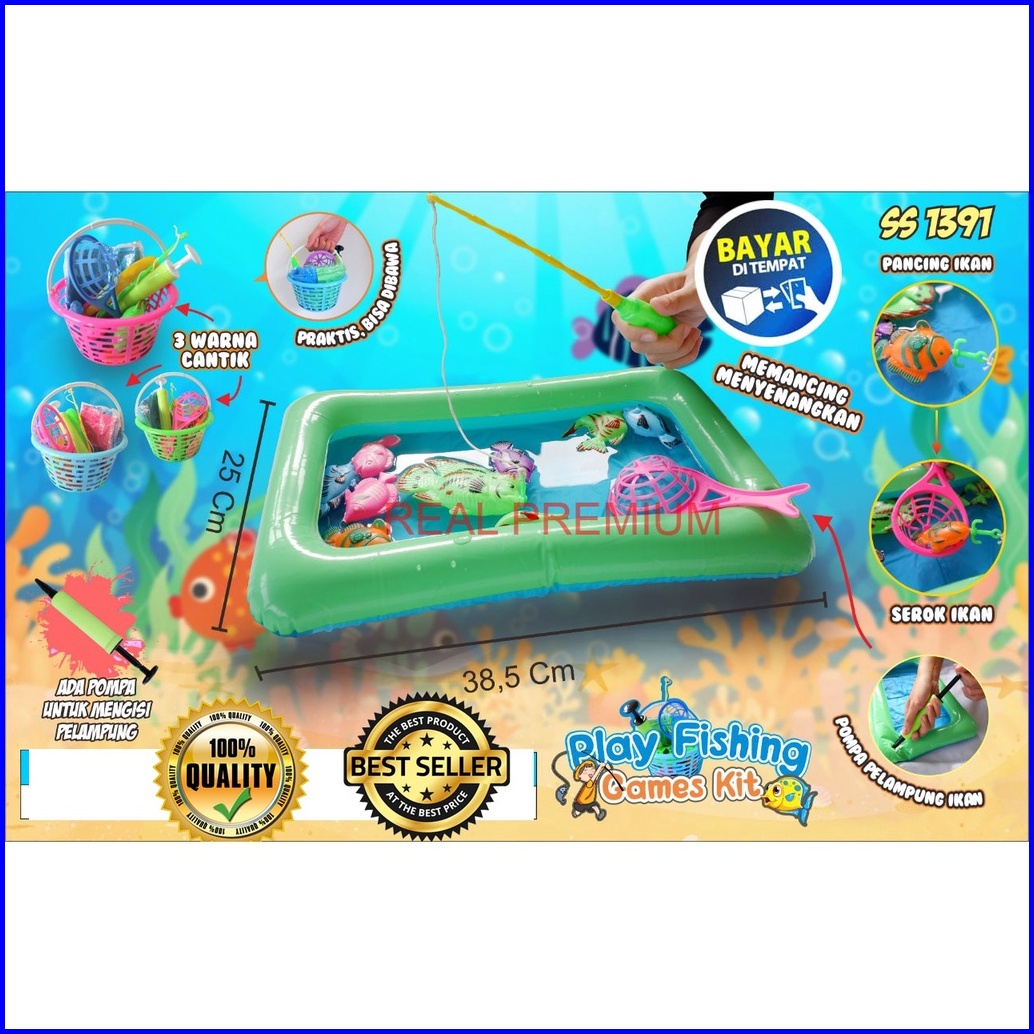 Mainan Anak Pancingan Ikan Magnet 1391 Plus Kolam Pompa Dan Keranjang