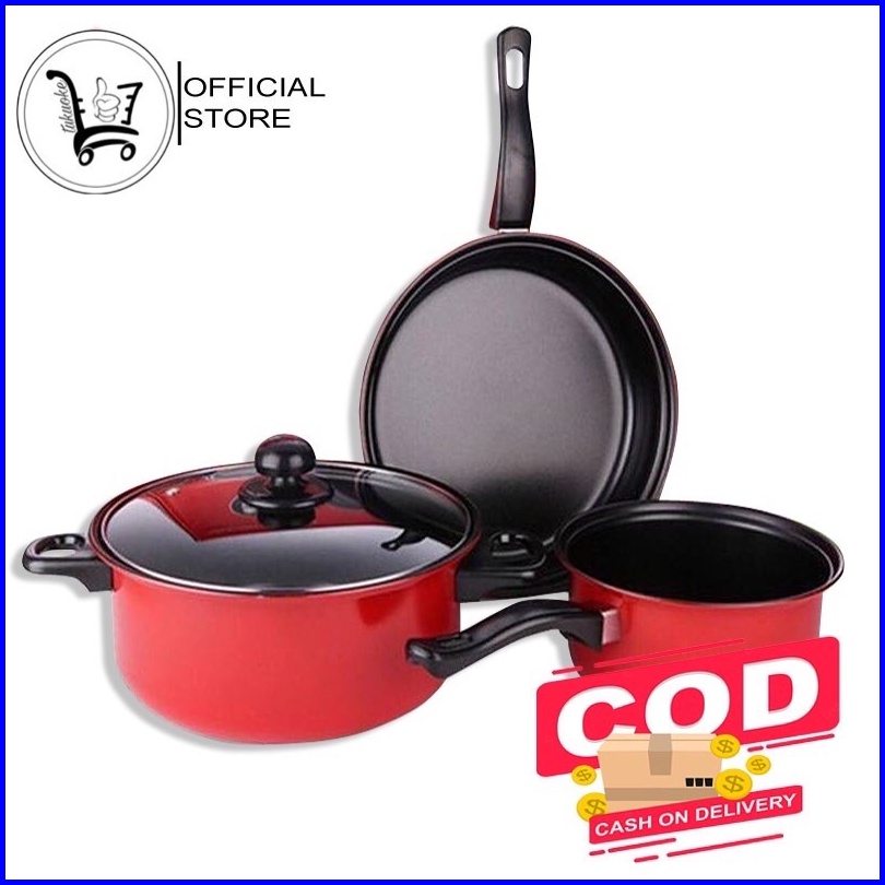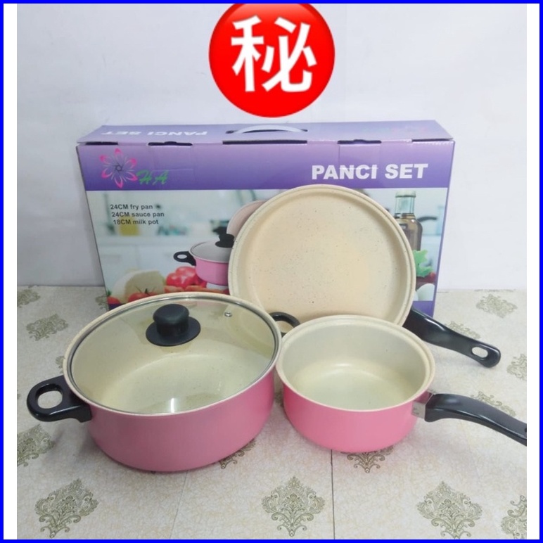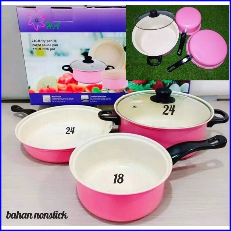 Panci Set Pot Blue Pink 3in 1 Anti Lengket Panci Isi 3 Tutup Kaca Panci Set Pot Cookware Set Anti Lengket 3in1 Ha