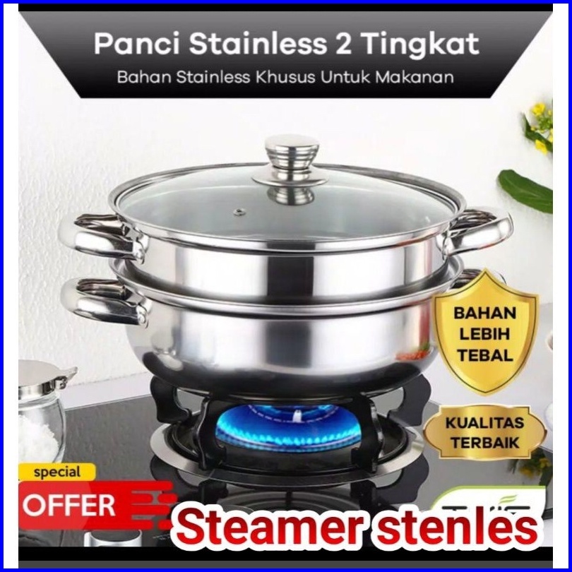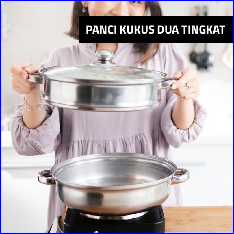Tukuoke Panci Kukus 2 Susun Steamer Steinless Tutup Kaca Panci Somay Siomay