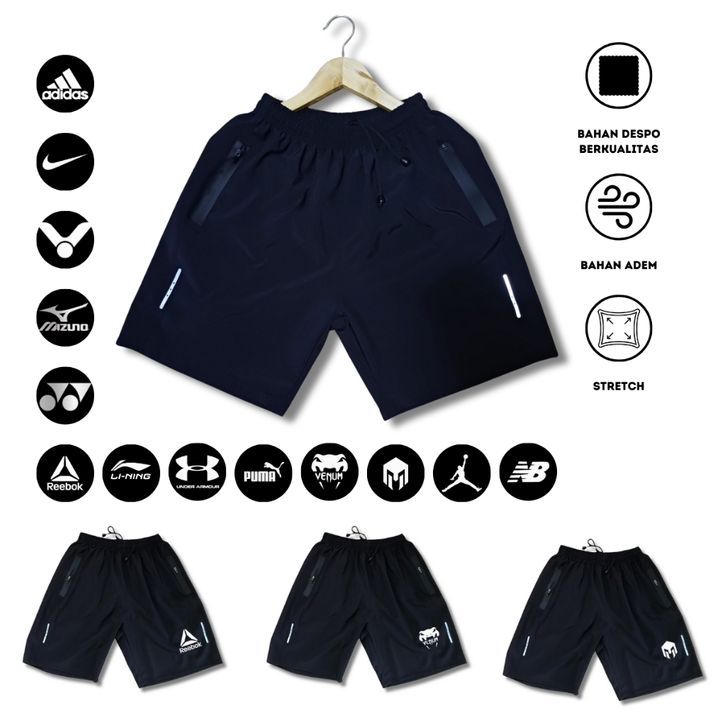 Celana Olahraga Pria Celana Pendek Parasut Olahraga Saku Resleting Pria Wanita Shortpants Santai Jumbo Polos Hitam
