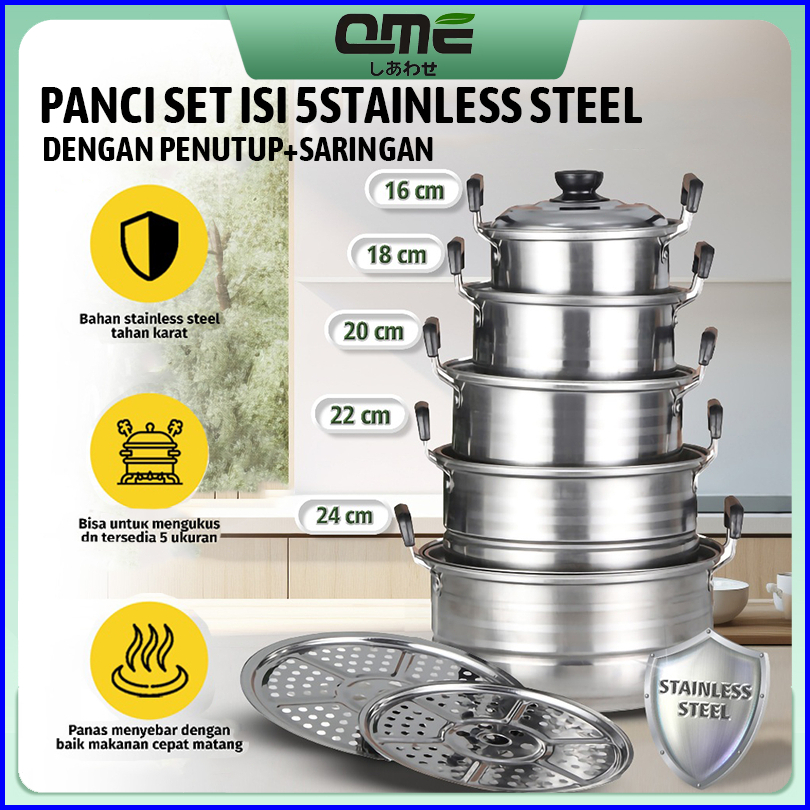 Qme 12in1 Panci Steamer Set Stainless Isi 5 Pcs 2pcs Kukusan Panci Bahan Tebal Premium Panci Stainless Set