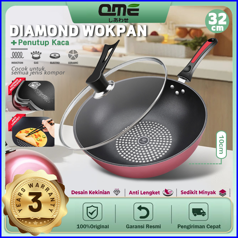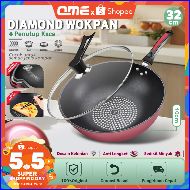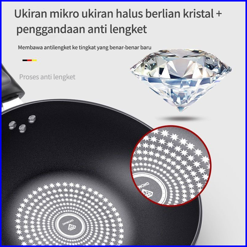 Diamond Wok Pan Wajan Penggorengan Lengket Anti Batu Medis Ukuran 33cm Wajan Medis Antilengket Bahan