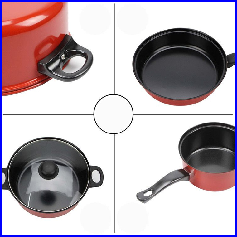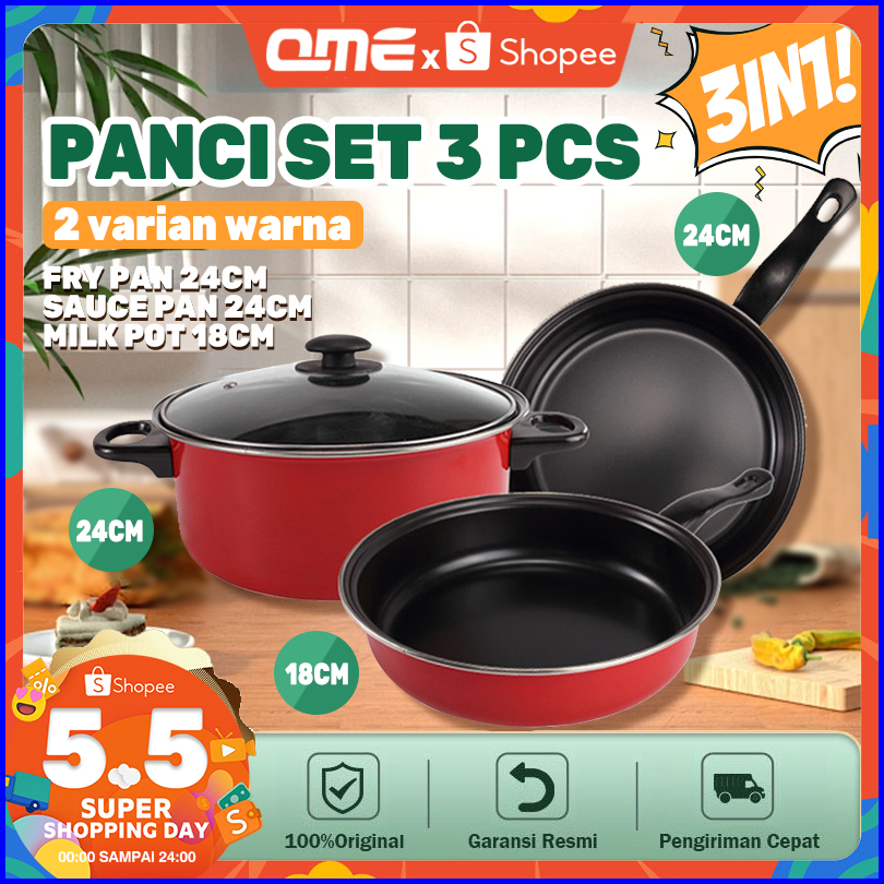 Qme-3 Set Wajan Teflon Stainless Steel Cookware Set Free Penutup Kaca Panci Kukus Fry Pan