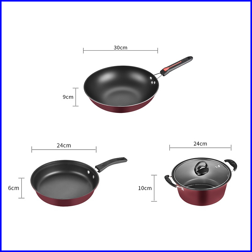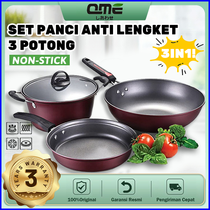 Qme Panci Wajan Teflon Set Panci Teflon Penggorengan Set 3 Pcs Pans Pots