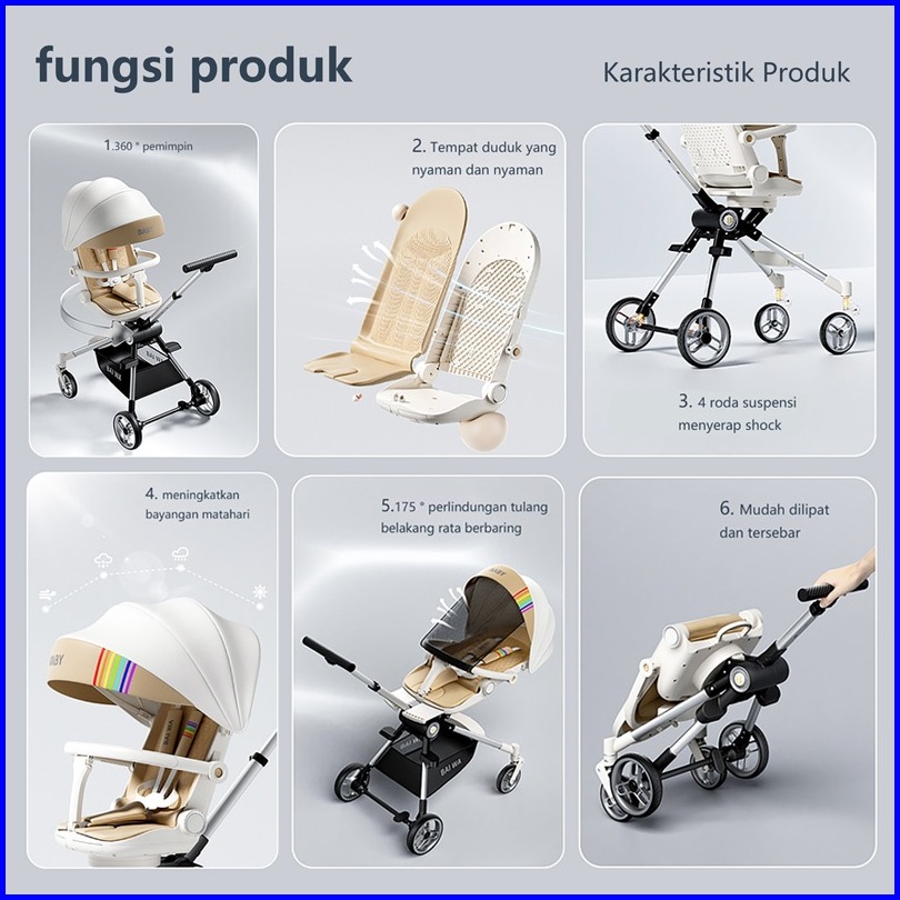 Mmflight Kereta Dorong Bayi Stroller Baby Lipat Traveling 2 Arah New Arrival
