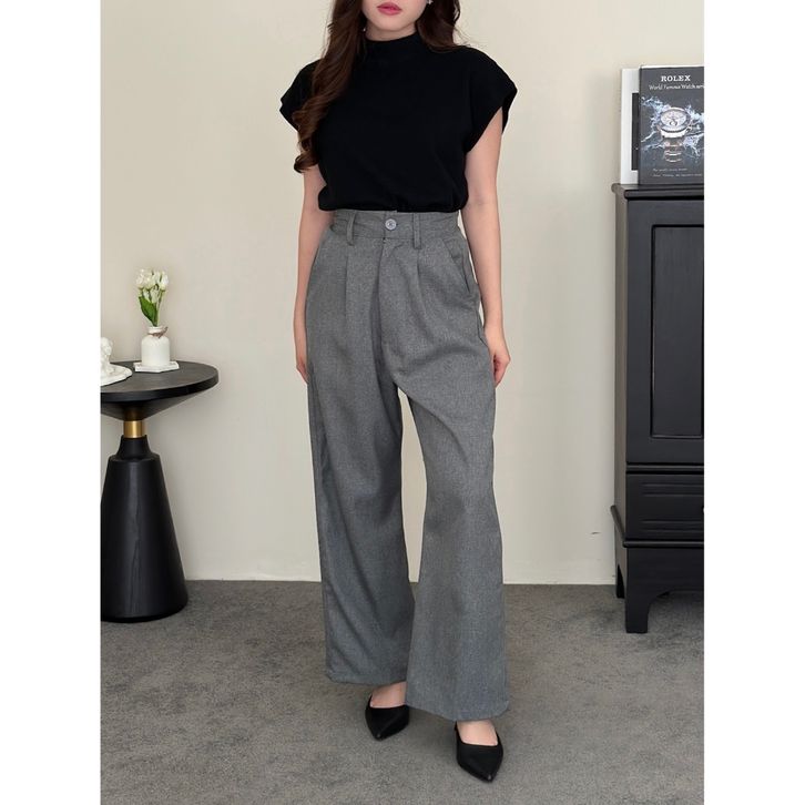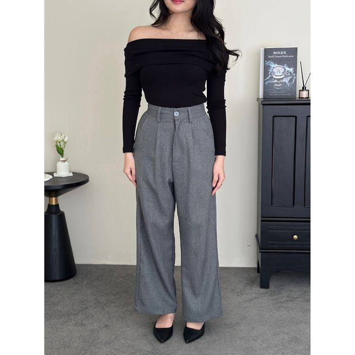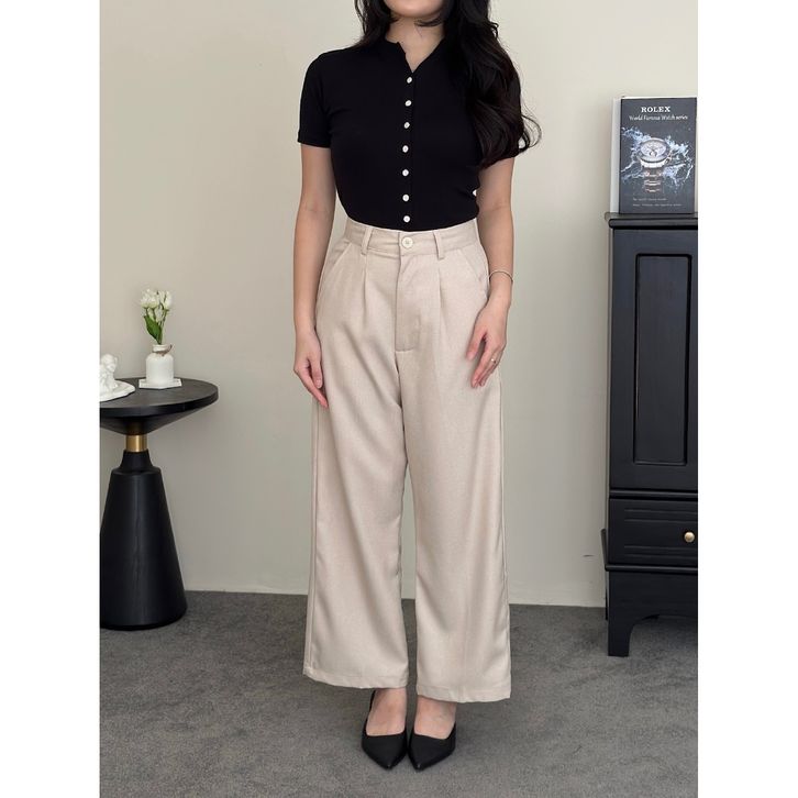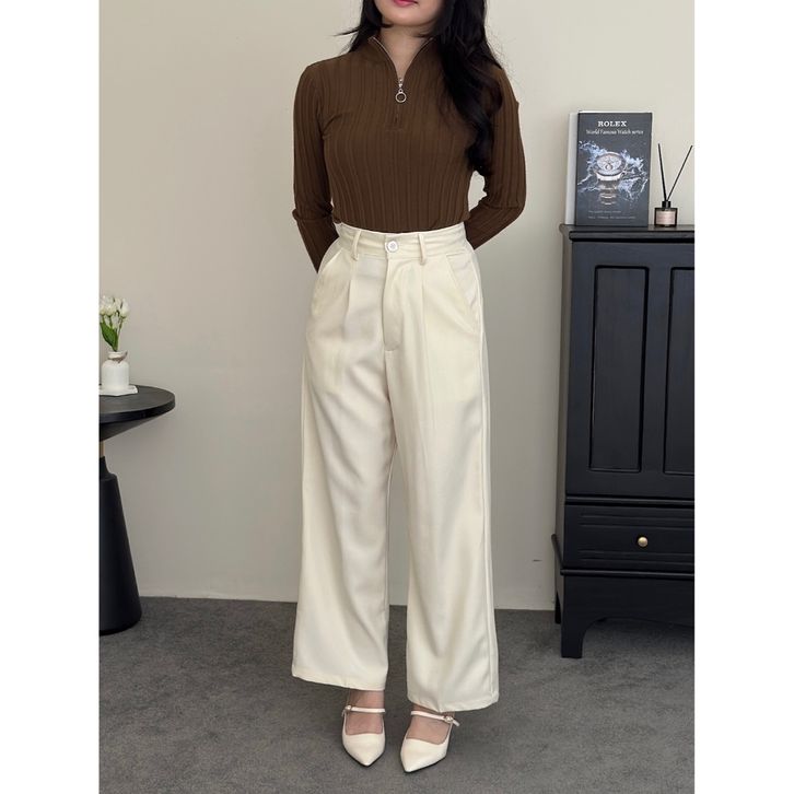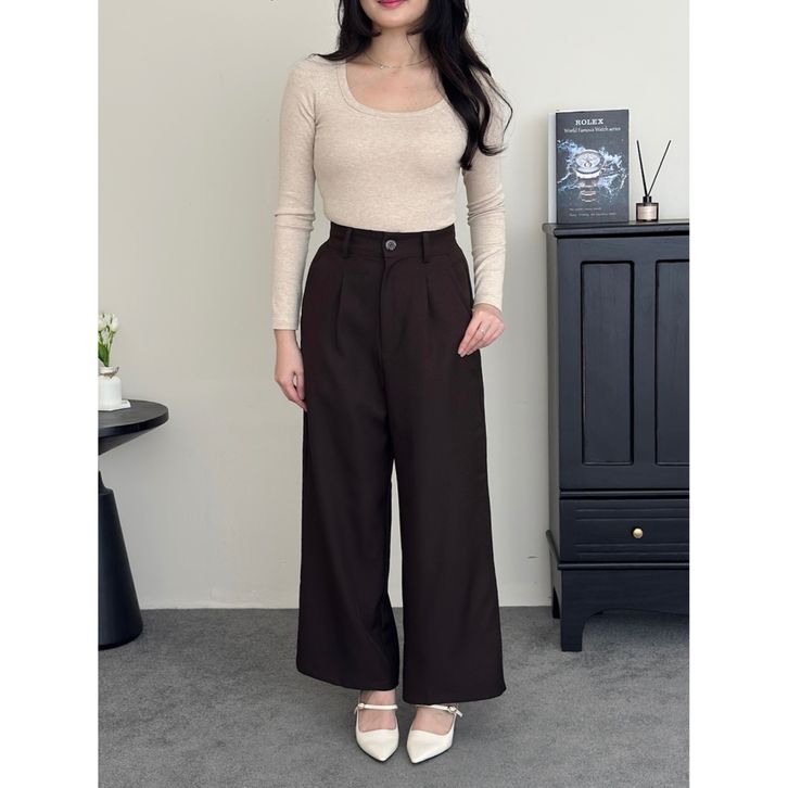 Celana Highwaist Wanita – Wide Leg Loose Pants Formal & Kantor Elegan