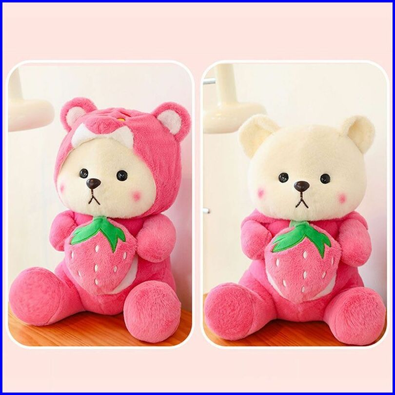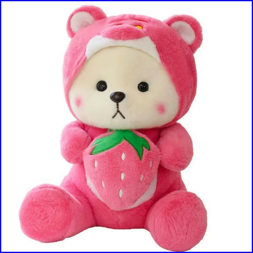 Boneka Teddy Bear Costum Lotso Hoodie Strawberry Hadiah Anak Ulang Tahun Kado Viral
