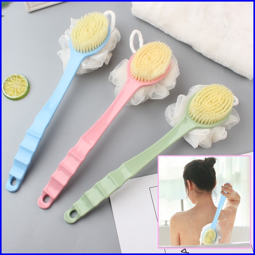 Sms Sikat Mandi Dua Sisi Spon Bulu Lembut Gagang Panjang Sikat Gosok Punggung