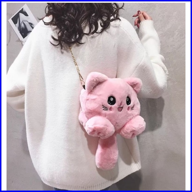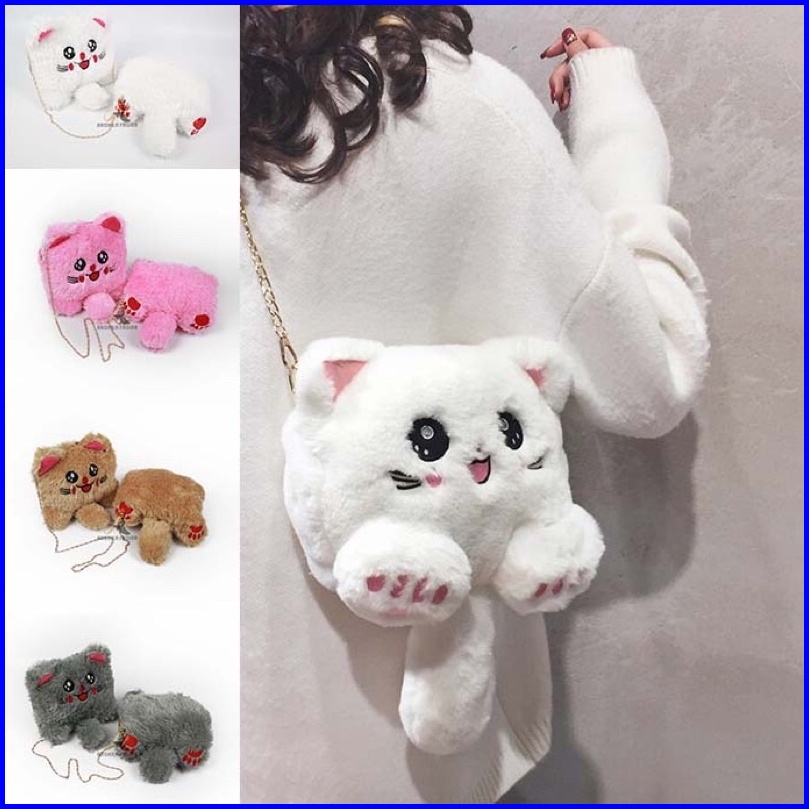 Tas Selempang Boneka Kucing Fykacu Tas Tali Rantai Tas Bulu Korean Style Sni