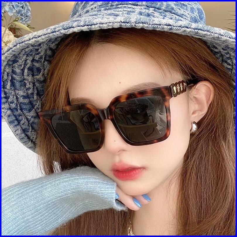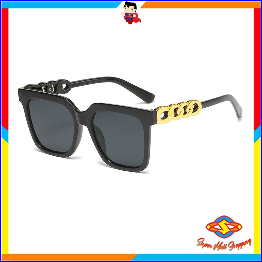 Sms Kacamata Hitam 6642 Motif Rantai Kaca Mata Wanita Model Eropa Amerika Retro Kotak Besar Korean Fashion Sunglassess E
