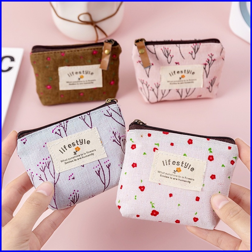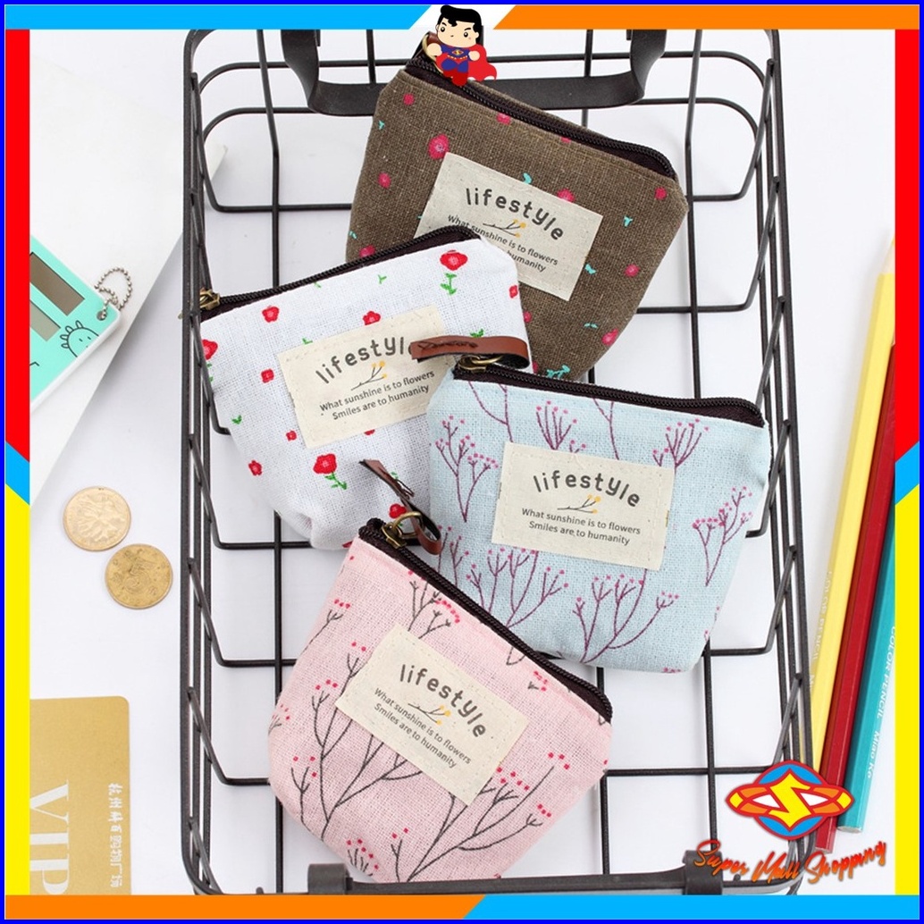 Sms Pouch Dompet Koin Resleting Live Style Kanvas Dompet Serbaguna Sleting Motif Bunga Wallet Coin Dompet Perhiasan Head