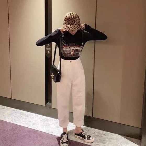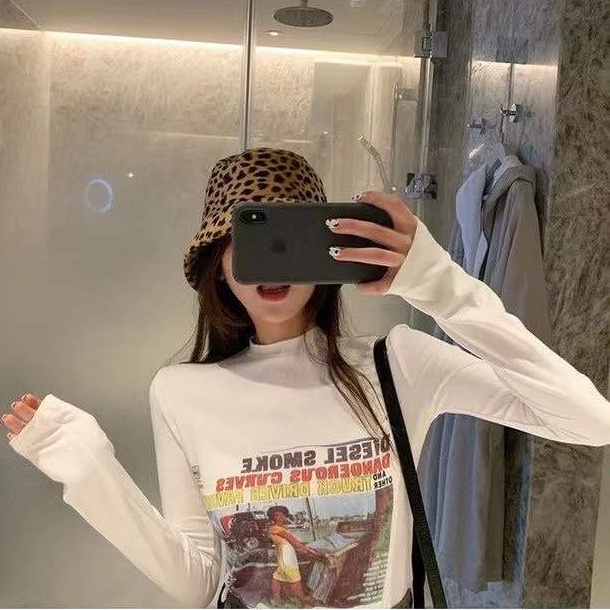 yikoo-Kaos wanita casual print t shirt atasan lengan panjang korea