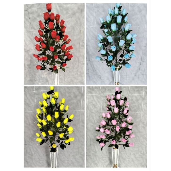 bunga mawar artificial 48 cabang set pot standing mawar tiruan cabang 48 mawar plastik jumbo mawar set pot
