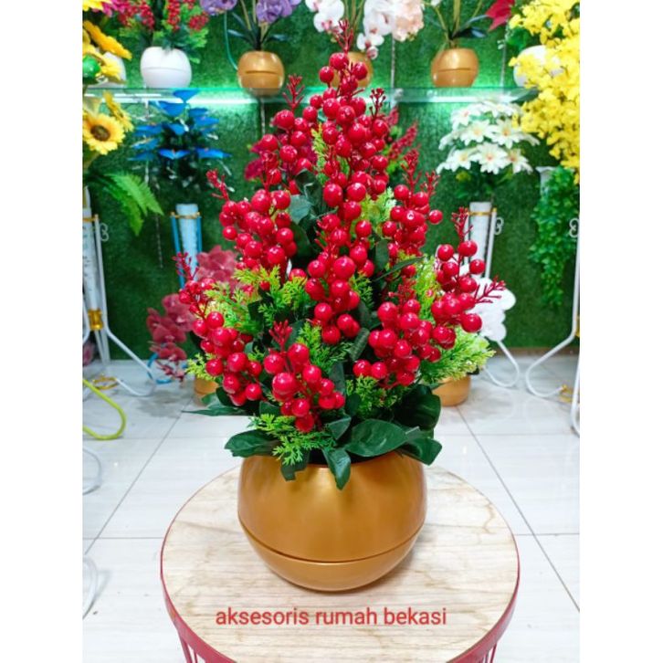 RANGKAIAN POHON CHERRY JUMBO DENGAN POT BOLA BUNGA HIAS RUANG TAMU ESTETIK