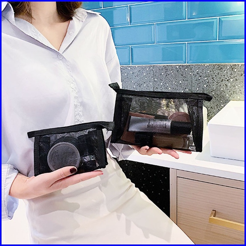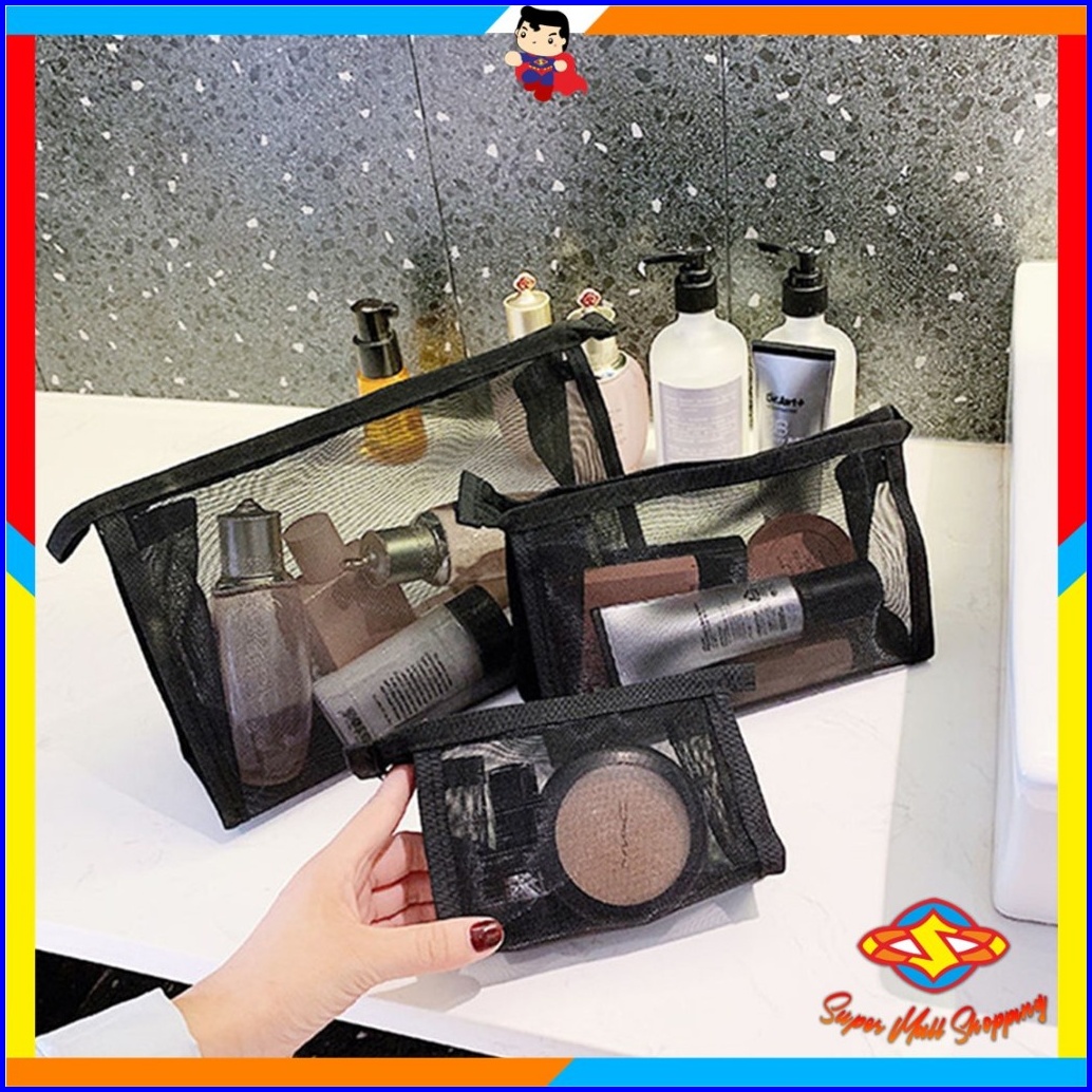 Sms Tas Kosmetik Traveling Pouch Kosmetik Transparant Jaring Polyster Pouch Travel Make Up Bag Organizer Dompet Kosmetik