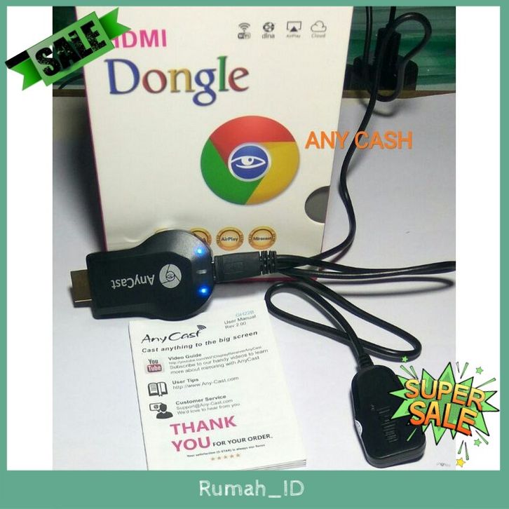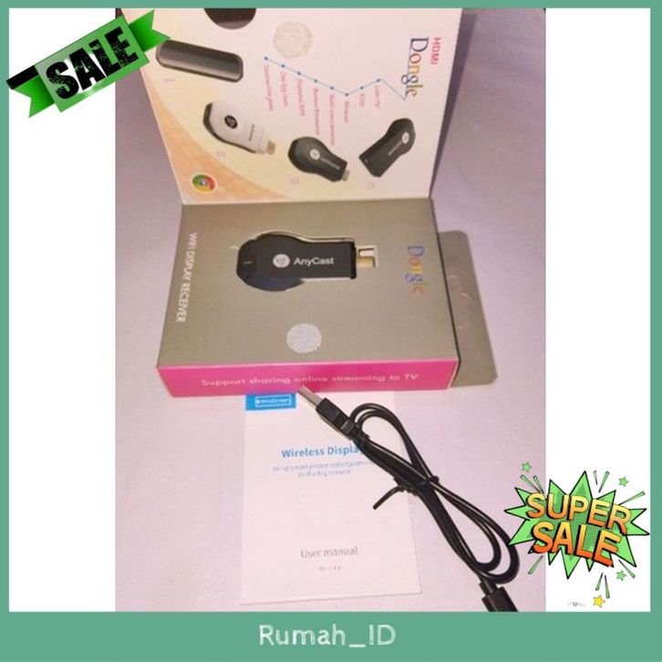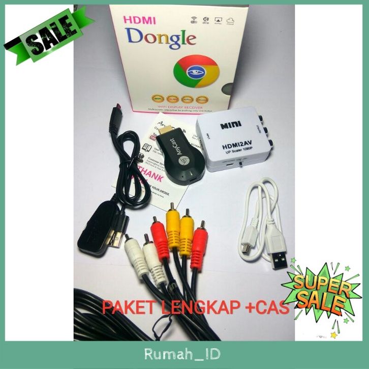 Paket Lengkap Layar HP Android ke TV TABUNG/LED/Monitor dengan Anycast Miracast /Hdmi Dongle pixel 1080P/ Mirroring
