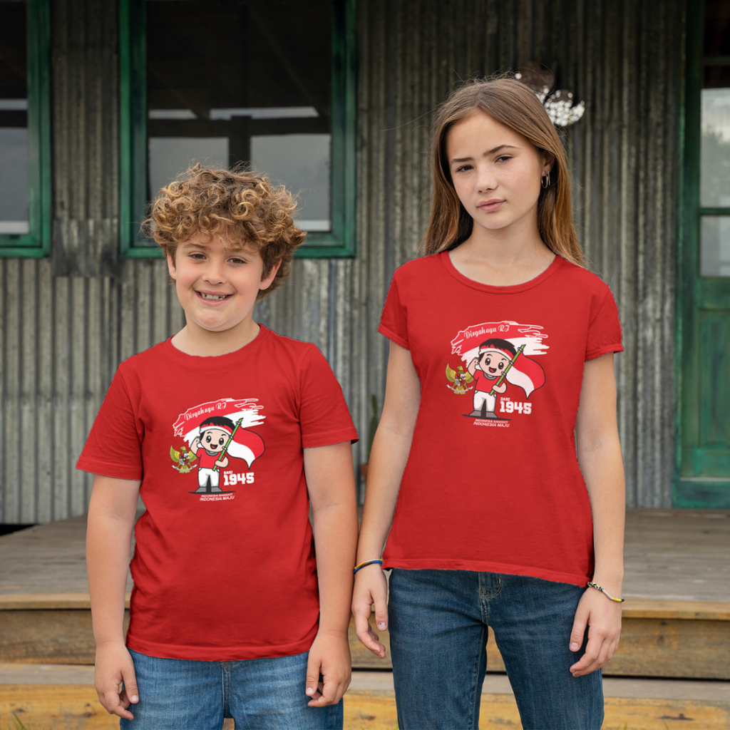 ( PROMO )Baju Kaos Distro Anak Kemerdekaan Dirgahayu 17 Agustus 1945 Indonesia HUT RI Ke 79 Usia 1 - 10 Tahun