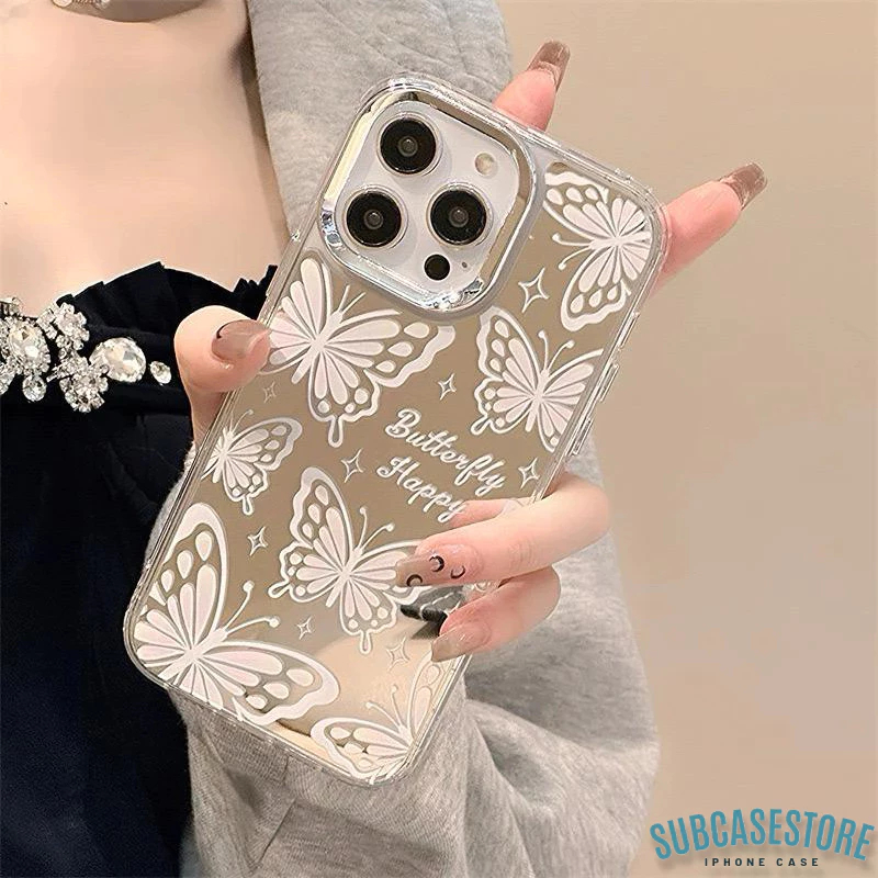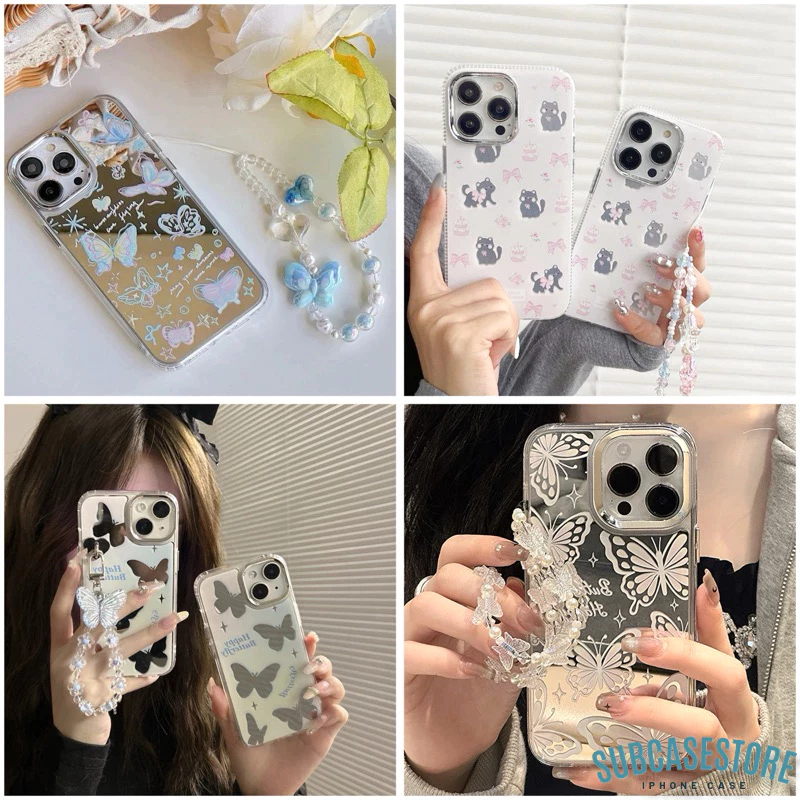 Case Iphone Motif Cat Butterfly Mirror Series XR XS MAX 15 14 13 12 11 PRO MAX 15 14 PLUS Tpu Premium Casing Terlaris
