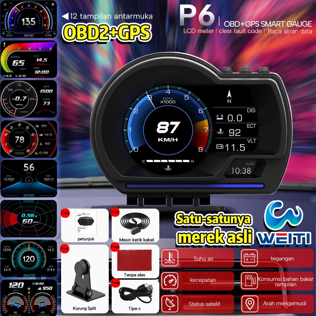 PROMO Car Smart Gauge P6 OBD2+GPS HUD Smart Car Layar Display Hd Sistem Kode kesalahan bisa dihapus