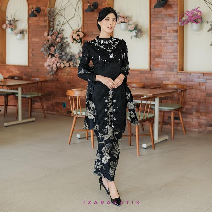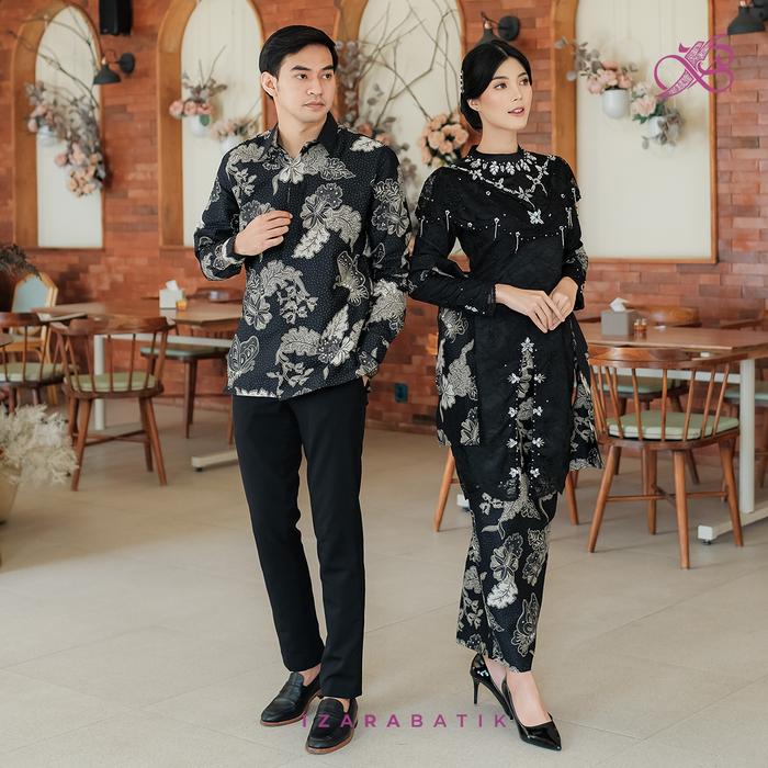 Zivana Hitam - Setelan Baju Wanita Kebaya Tunik Batik Modern Couple Atasan Sarimbit Pasangan Kondangan - Kemeja Furing,