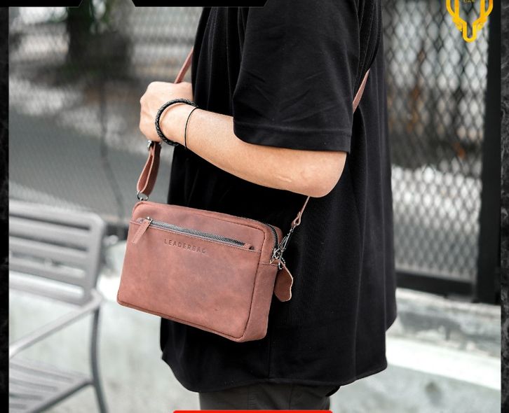 Tas selempang pria kulit sapi asli leaderbag terbaru ts tangan cowok keren branded waterproof LEADERBAG TOKO HR.TAS BRAN