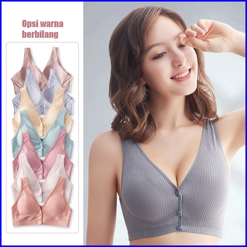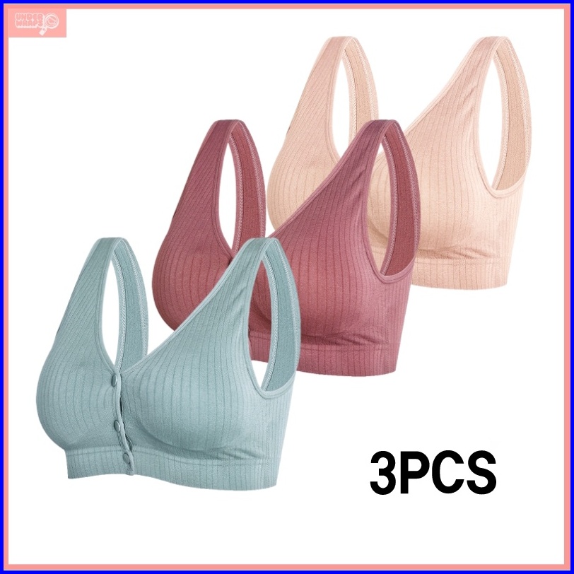 3pcs Nursing Bra Wanita Bra Menyusui Kancing Depan Tanpa Kawat Katun Bh 1018bra