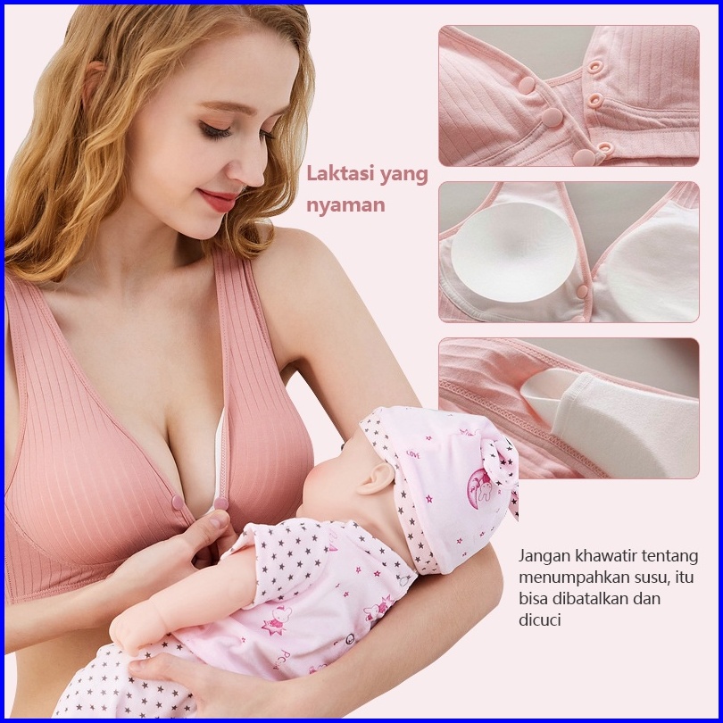 Nursing Bra Wanita Bra Menyusui Kancing Depan Tanpa Kawat Katun Bh 1018bra
