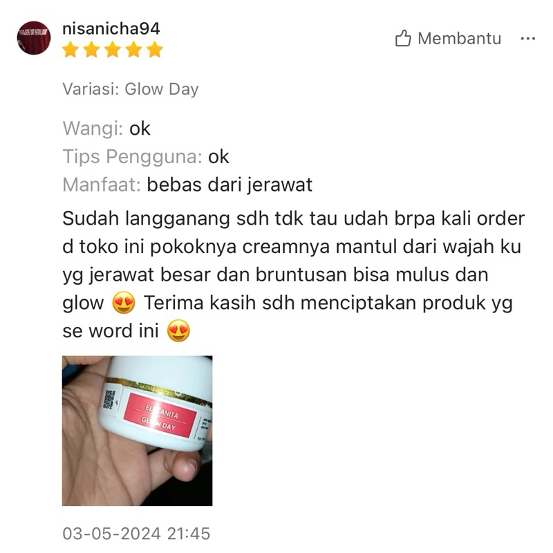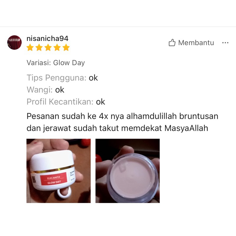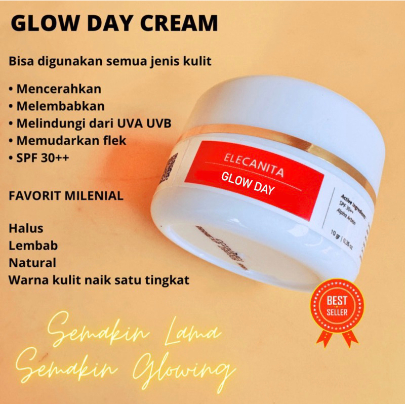 GLOW DAY Cream Pagi Pelindung Sinar UVA UVB Sunscreen Non Comedogenic SPF 30++ PA Glowing Jerawat Flek Hitam Elecanita