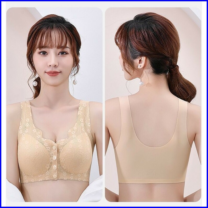 Bra Menyusui Rompi Renda Kancing Depan Pakaian Dalam Push Up Bra Wanita Sport Tanpa Kawat Busa Br01