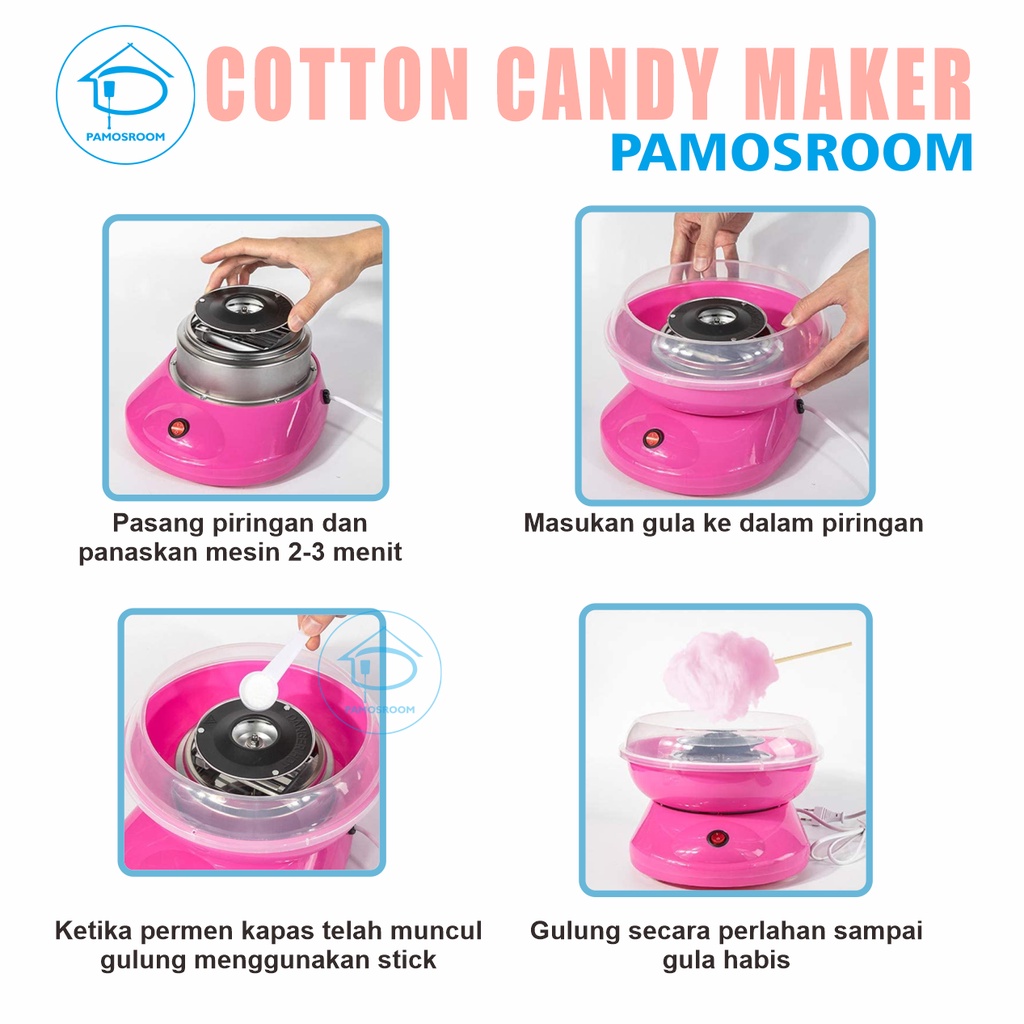 Pamosroom Mesin Gulali Mini Garansi 3 Bulan Electric Cotton Candy Floss Maker Alat Pembuat Gulali
