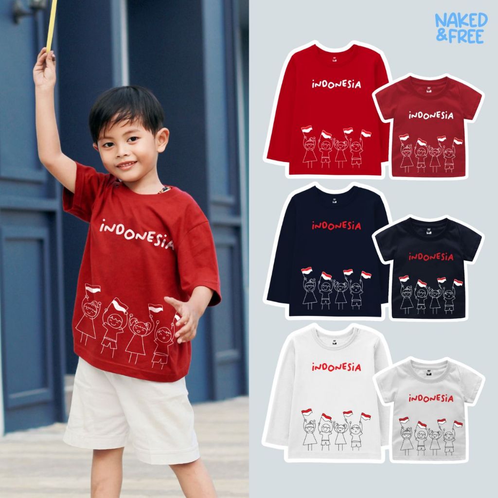 ( PROMO )Naked & Free Baju Kaos Kemerdekaan Size Anak Remaja Dewasa Bigsize Bahan Katun Combed 30s Premium