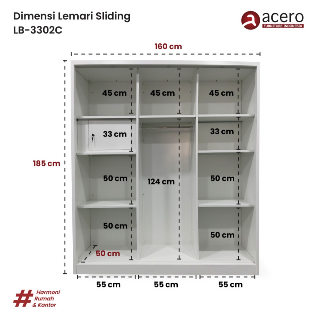 LEMARI PAKAIAN BESI SLIDING 3 PINTU 185 x 160 x 50 CM ANTI RAYAP DAN KARAT KAPASITAS JUMBO BERGARANSI FREE ONGKIR