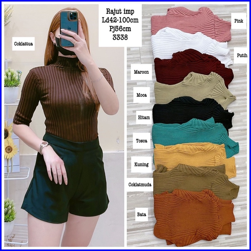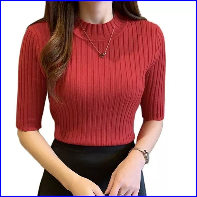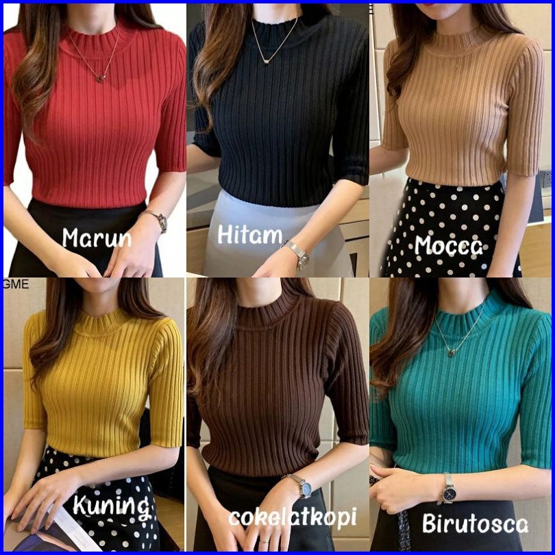 Atasan Wanita Rajut Premium Knit Turtleneck Midi 3 4