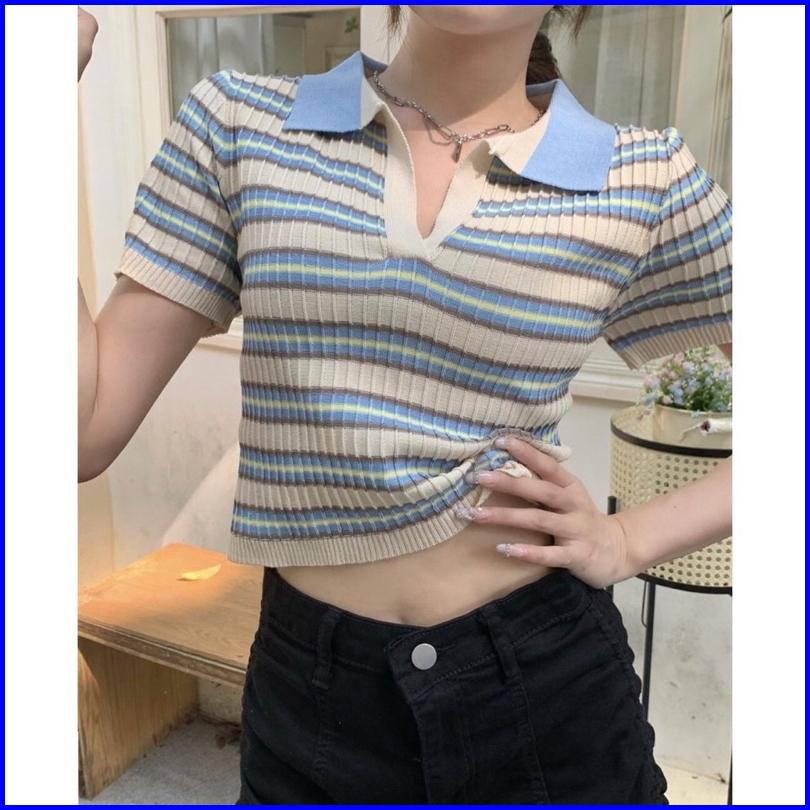 Atasan Rajut Lengan Pendek Salur Garis Garis Wanita Premium Baju Rajut Salur Garis Garis Lengan Pendek Premium Kaos Raju