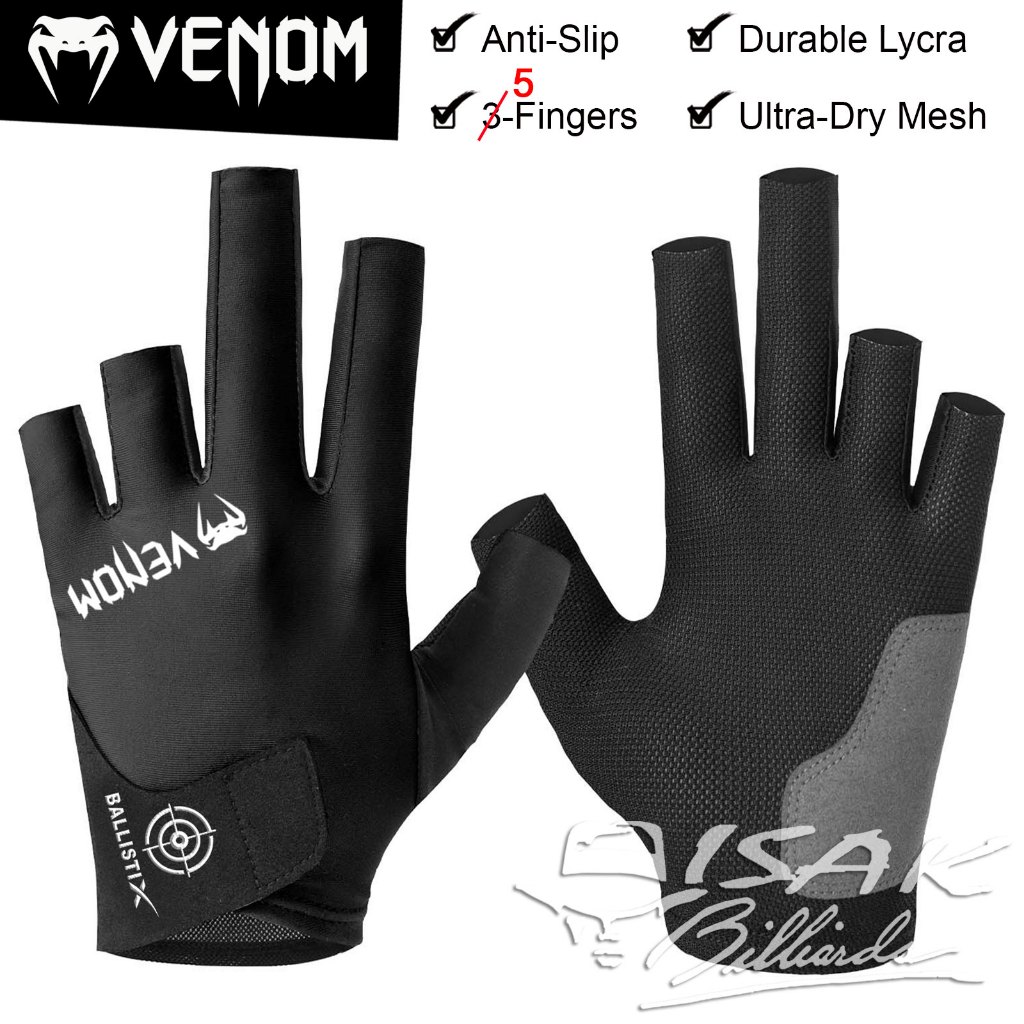 Venom BallistiX 5-Finger Glove Black - Anti Slip Sarung Tangan Billiard Lycra Mesh Hitam