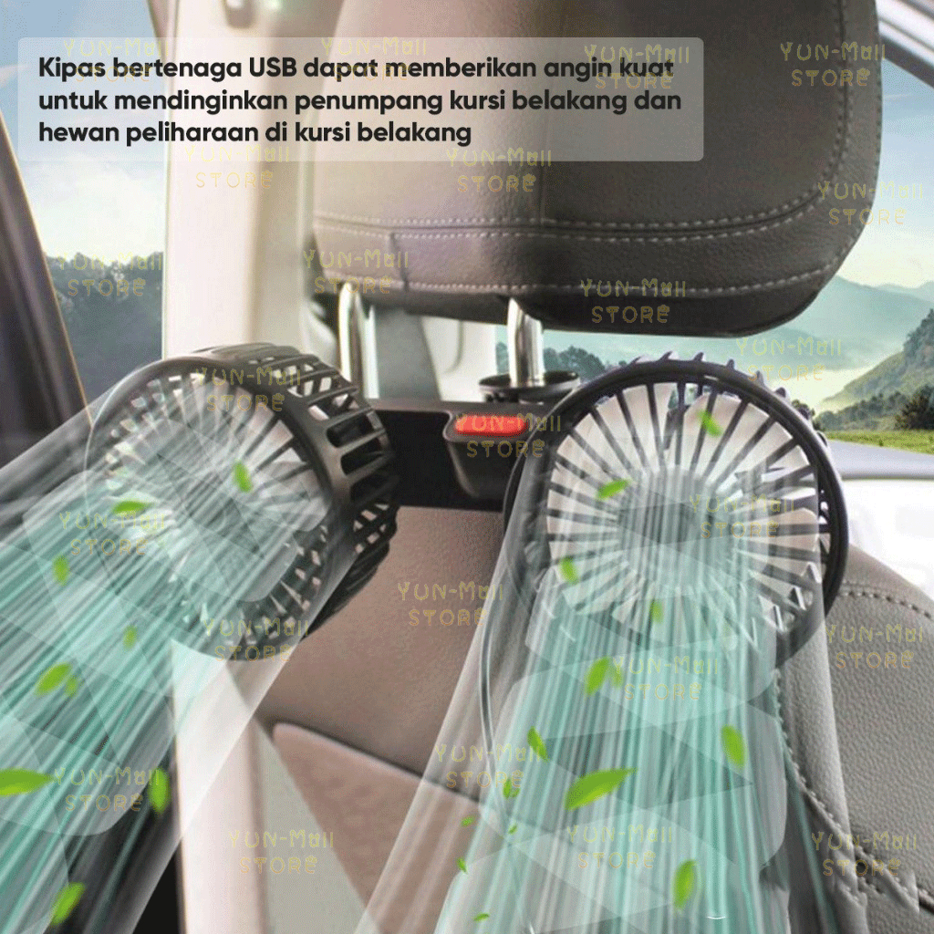 TERLARIS YUN Mall Portable Car Fan Kipas Angin Mobil 12 volt 24 Volt 360 Derajat Double Head USB Dengan 3 Kecepatan Doub