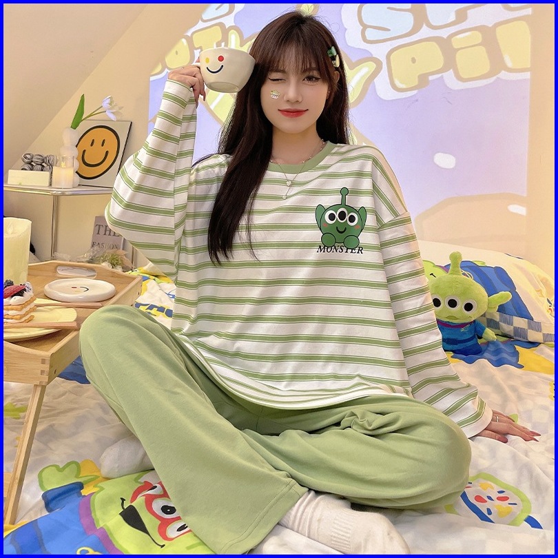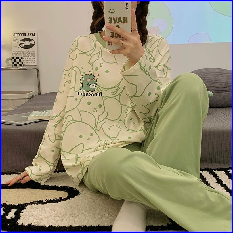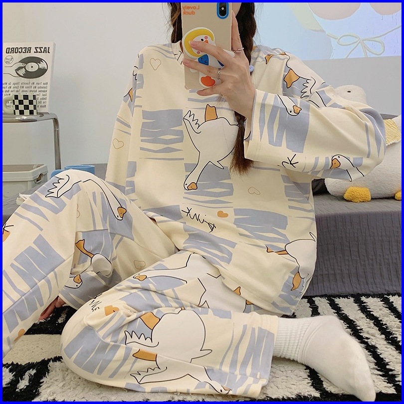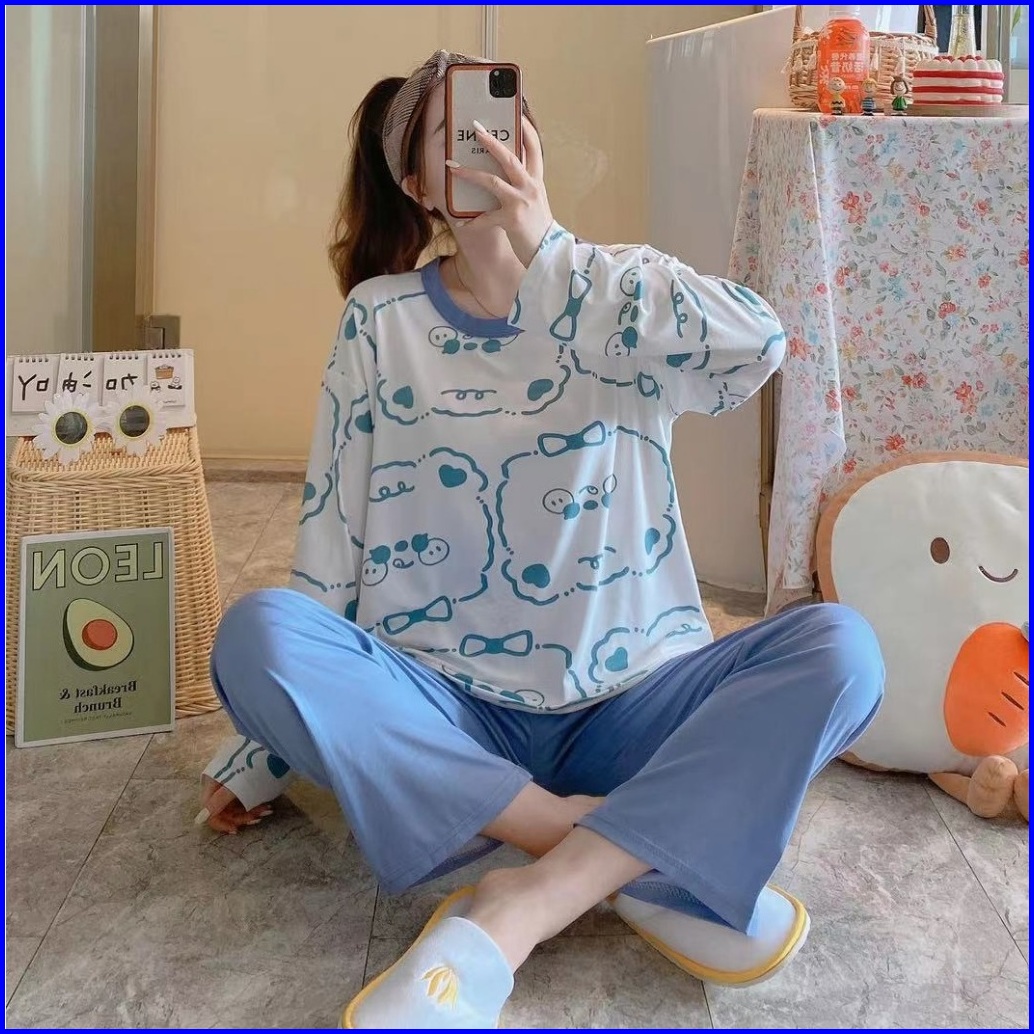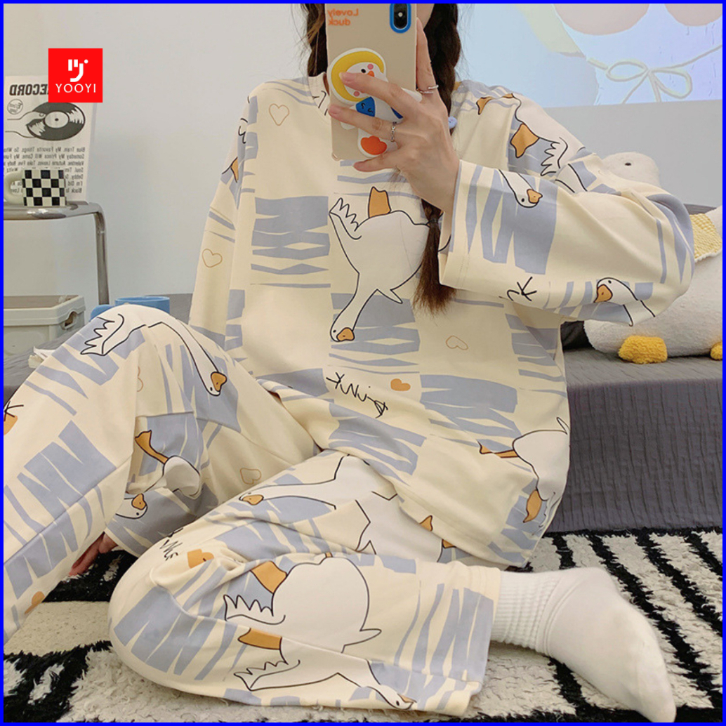 Yooyi Baju Tidur Wanita Set Dewasa Bahan Katun Adem Lengan Panjang Celana Panjang Piyama Setelan Perempuan Remaja Oversi