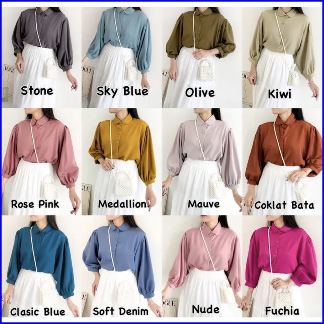 BLACK, BIRU MUDA, DUSTYPINK, COKSU, CREME, FUSCHIA, MATCHA, ARMY, LEMON, NUDE, WHITE, TIRAMISU, MAGENTA, EMERALD GREEN, MUSTARD, MAROON, BROWN, MOCCA, STELL BLUE, BIRU ITB, PINK BERRY, BRUGUNDY