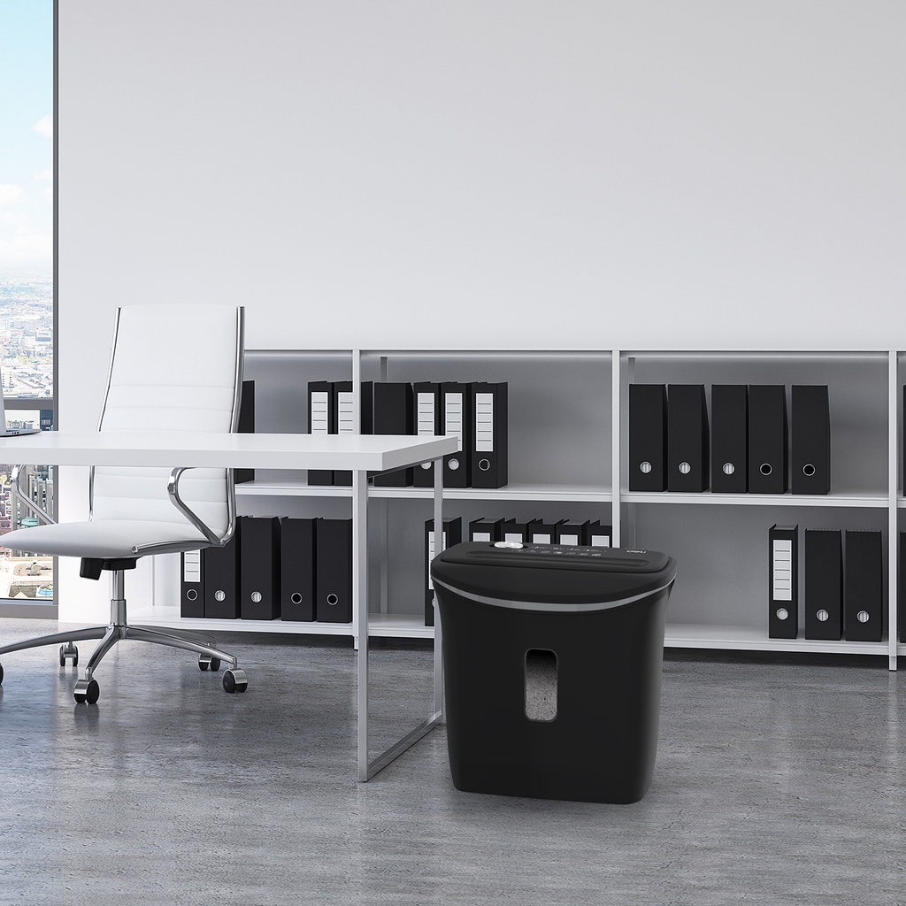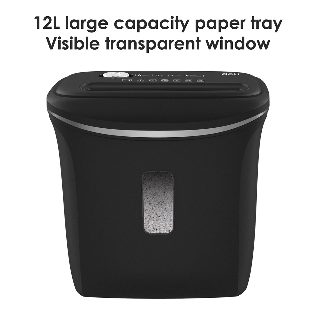 DISKON Deli Paper Shredder Mesin Penghancur Kertas Staples Kartu Kredit Otomatis Kapasitas 6 Lembar E9945