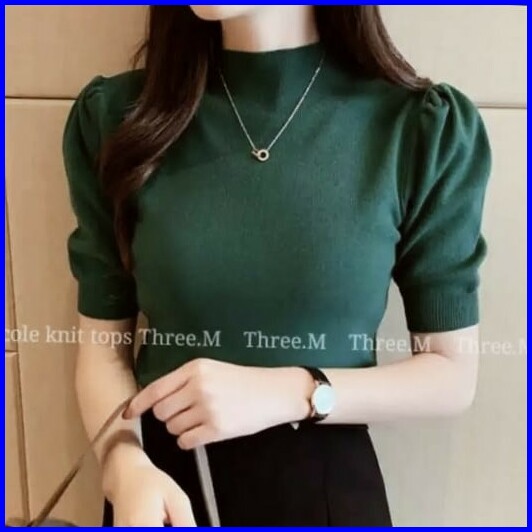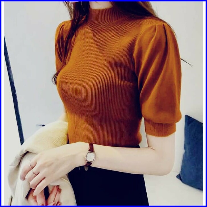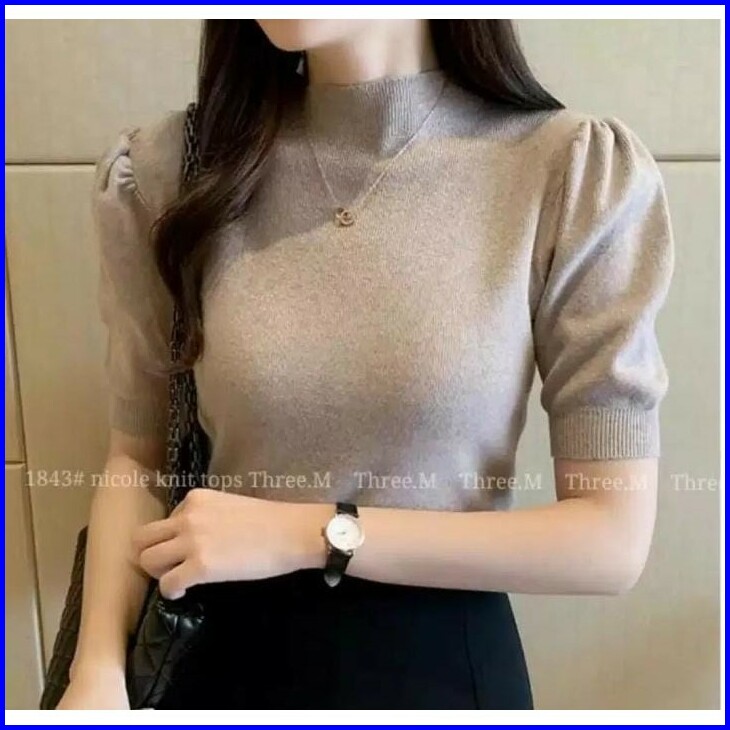 Nicole Knit Premium - Atasan Kerah Tinggi Wanita - Knit Tops 3 4
