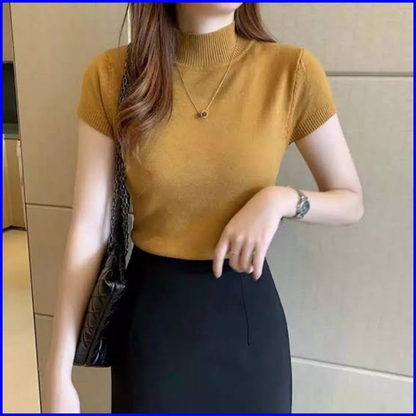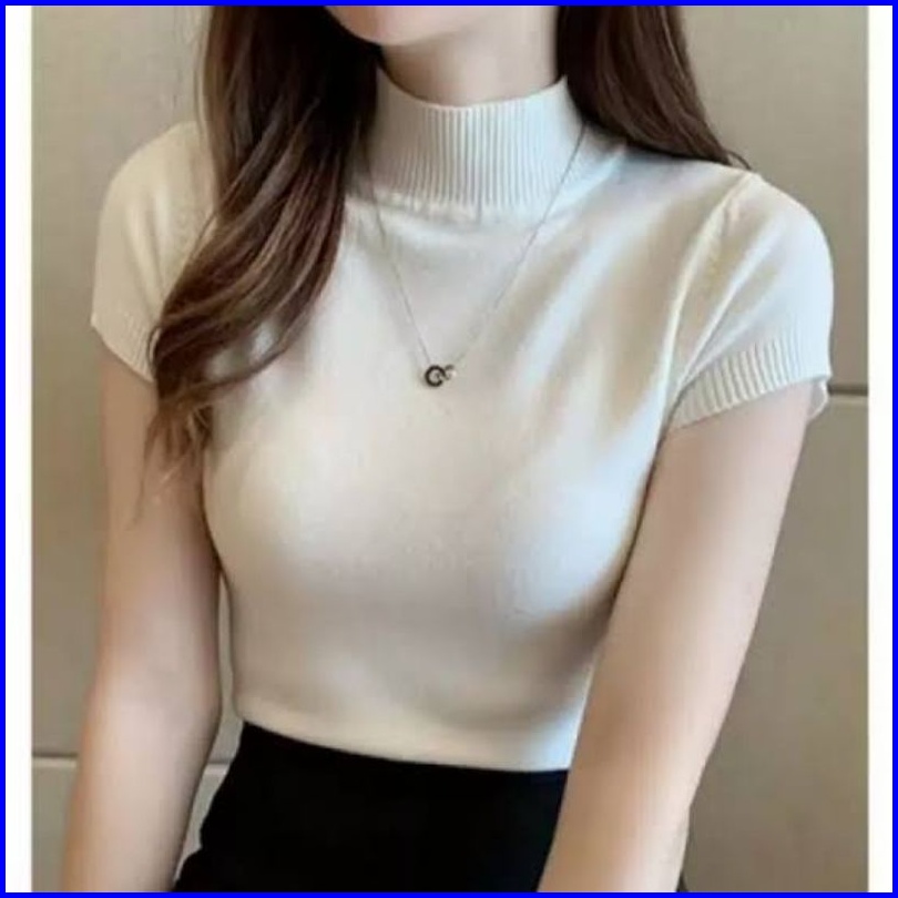 Promo Knit Turtleneck Lengan Pendek - Kerah Tinggi