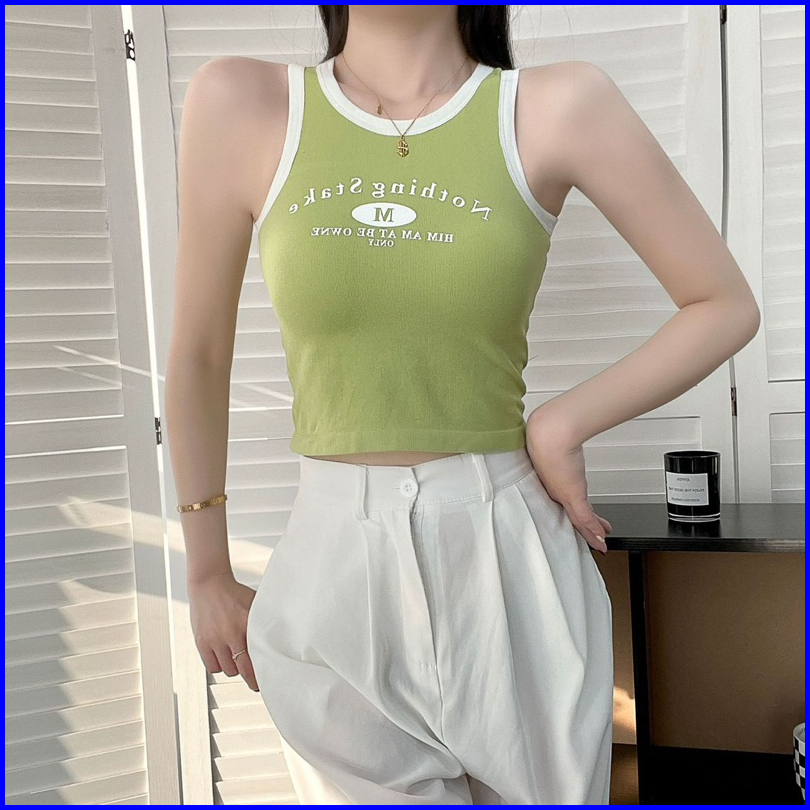 Crop Tank Top Bra Atasan Wanita Nothing T85 Tanktop Basic Elastis Bahan Premium Busa