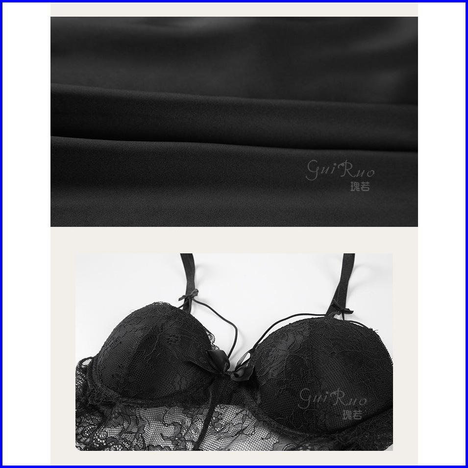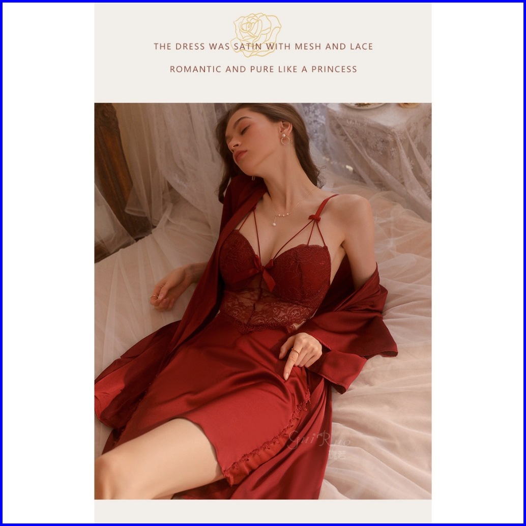 Yooyi Set Lingerie Baju Tidur Satin Plus Kimono Wanita Cup Bra Perspektif Renda Menggoda Seksi Model Korea Sexy Mini Dre