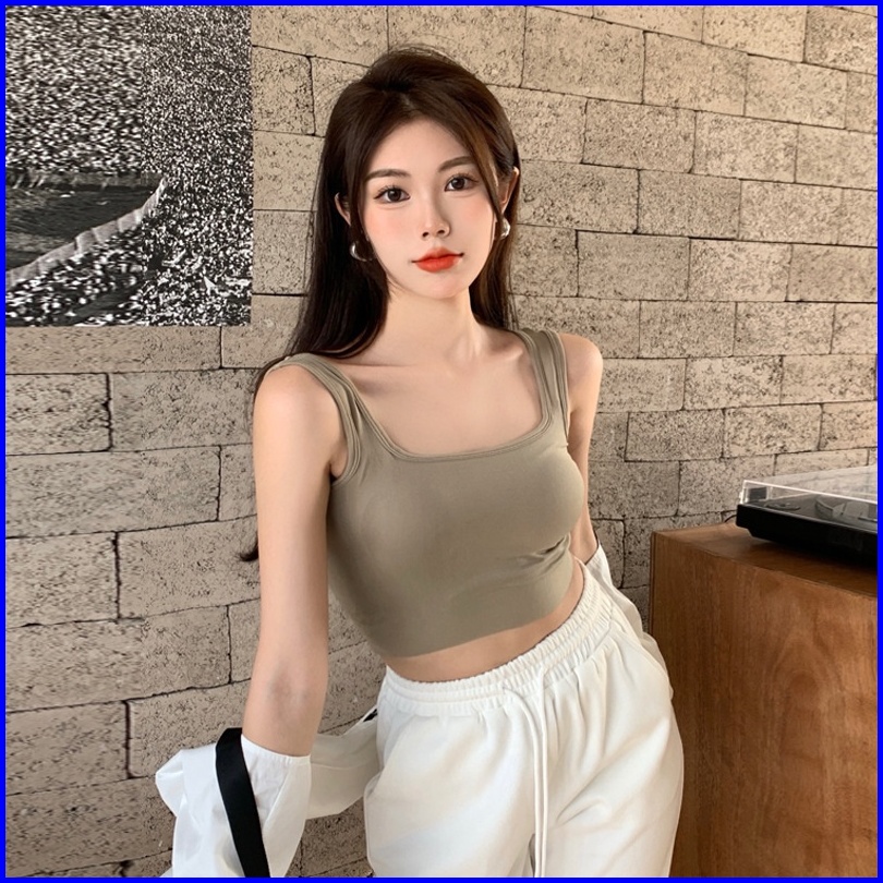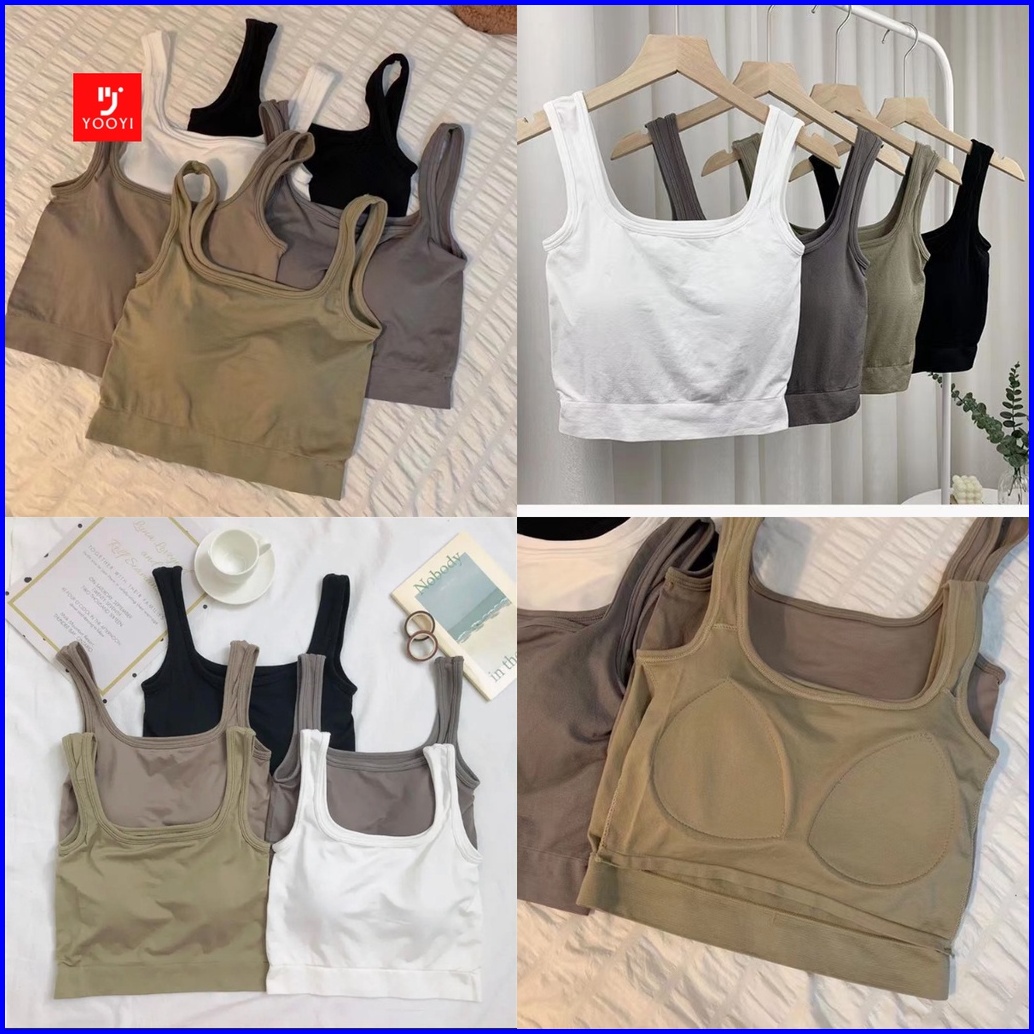 Yooyi Tank Top Bra Wanita Singlet Perempuan Crop Atasan Tanktop Basic Korean Dengan Tangtop With Cup Bahan Elastis Premi