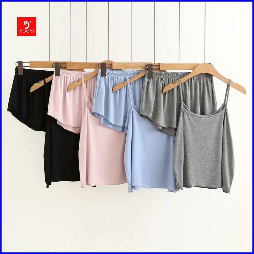 Yooyi Baju Tidur Set Wanita Sexy Camisole Dengan Celana Pendek Piyama Wanita Kamisol Setelan Korea Style Jumbo Sampai Si