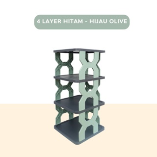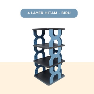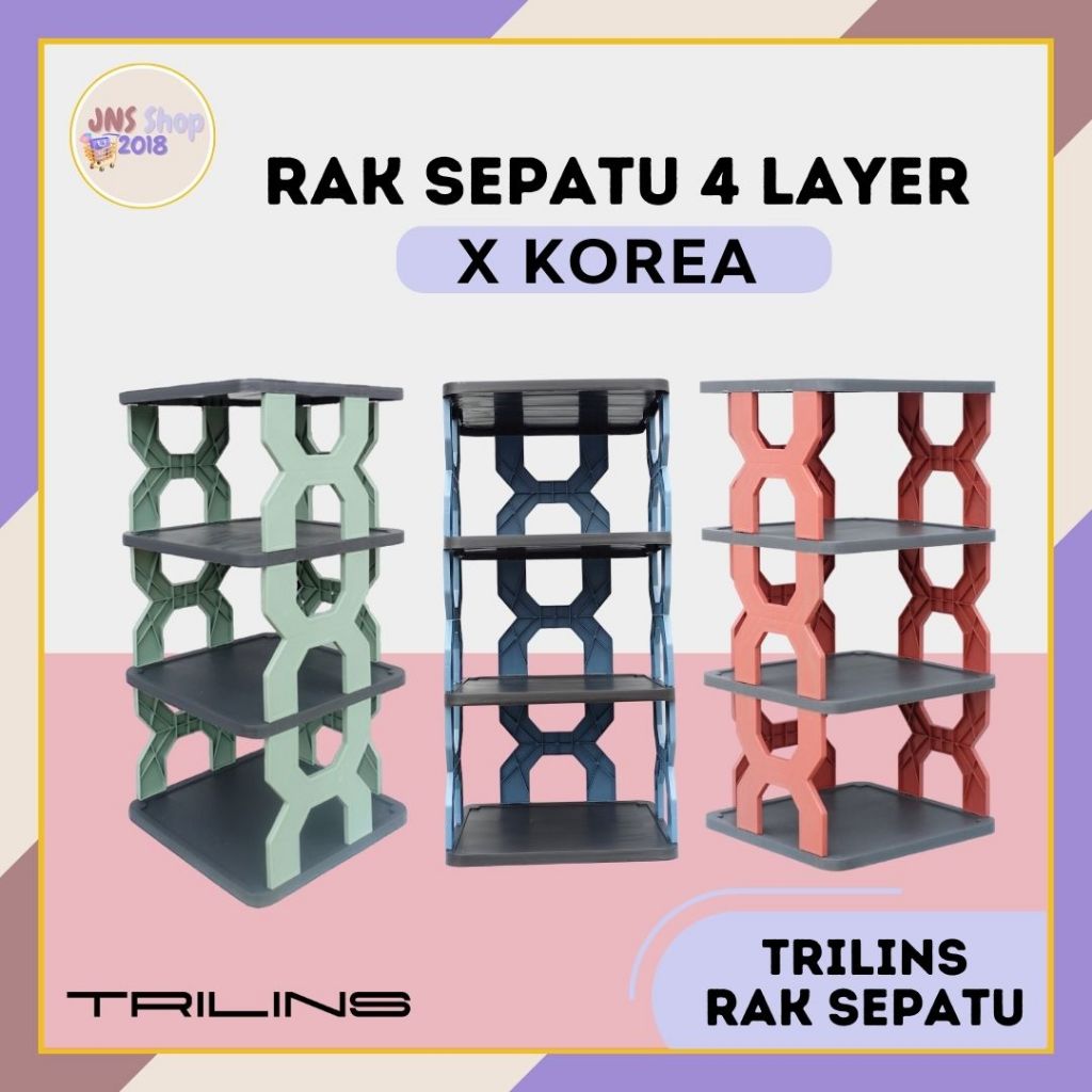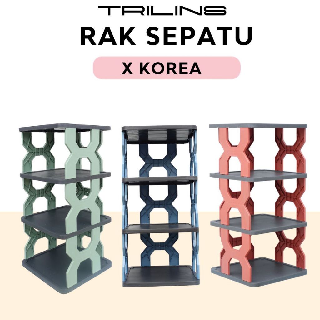 RAK SEPATU X KOREA Plastik Tempat Penyimpanan sandal boneka zig-zag 4 tingkat - TRILINS 4 SUSUN BLACK BASE